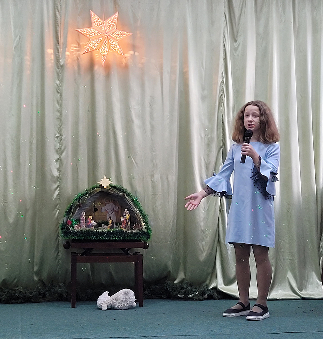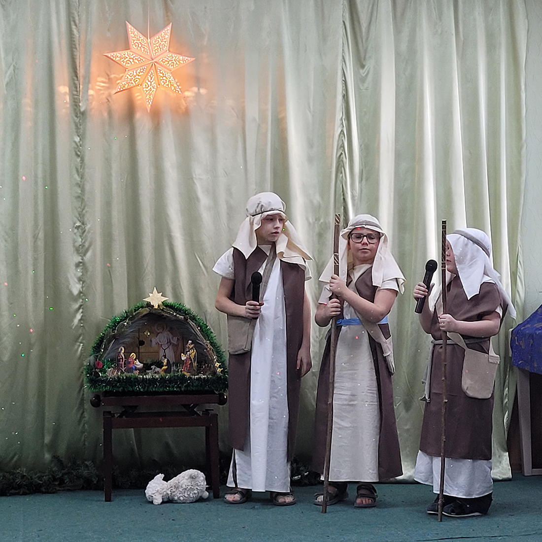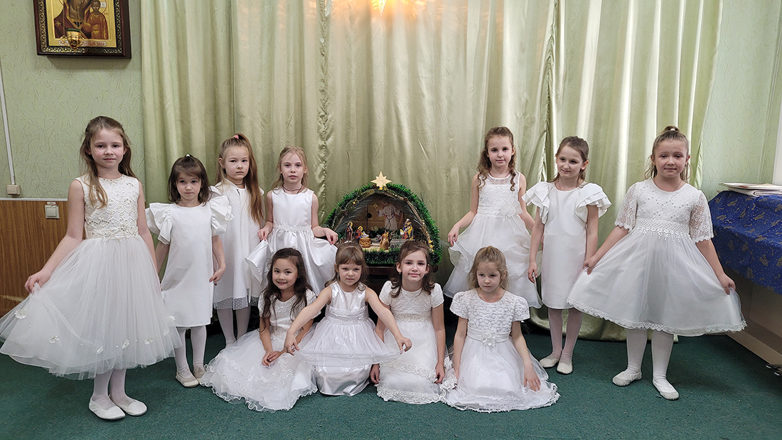 Праздник традиционно начался участием всех воспитанников в Божественной литургии, на которой ребята из старшей группы пели в составе клиросного хора. В этом году вход в храм украсил рождественский вертеп, сооруженный одной из семей воспитанников (автор – Демьянова Елизавета Евгеньевна).