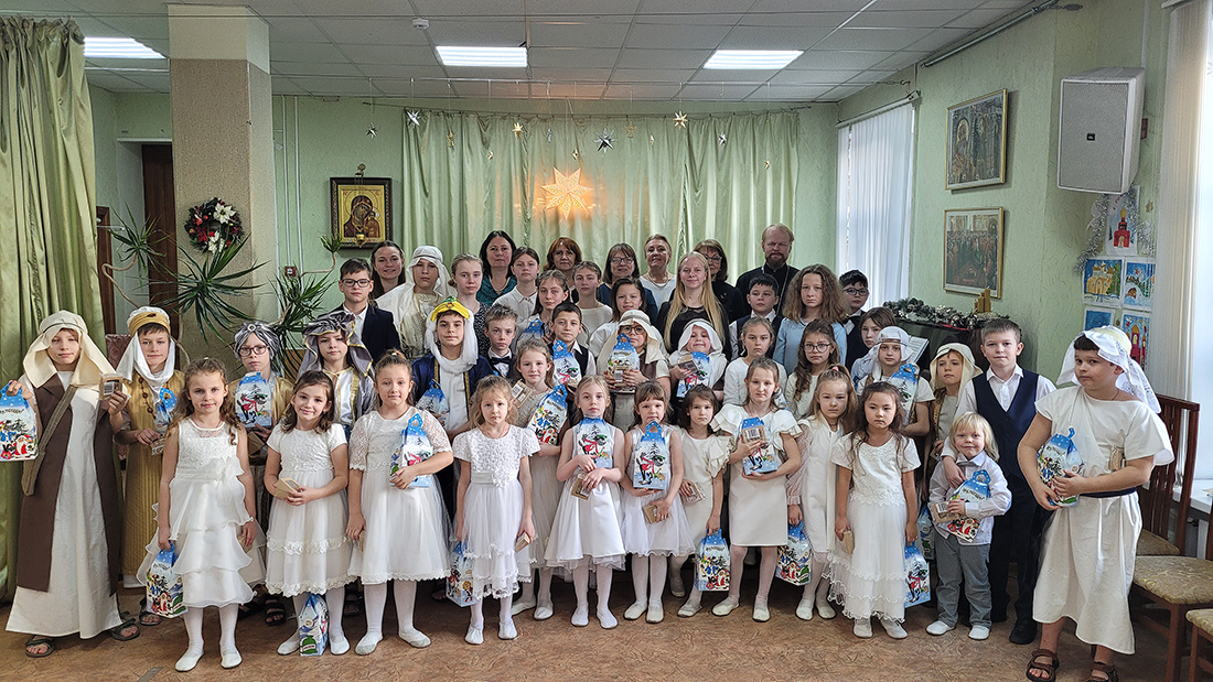 Праздник завершился вручением подарков и совместным чаепитием, во время которого ребята исполняли индивидуальные творческие номера, а самые маленькие участники водили праздничный хоровод. В заключительном слове директор воскресной школы Анна Александровна Медведева поблагодарила всех педагогов и родителей за помощь в подготовке мероприятия, пожелала мира и радости в эти святые дни.