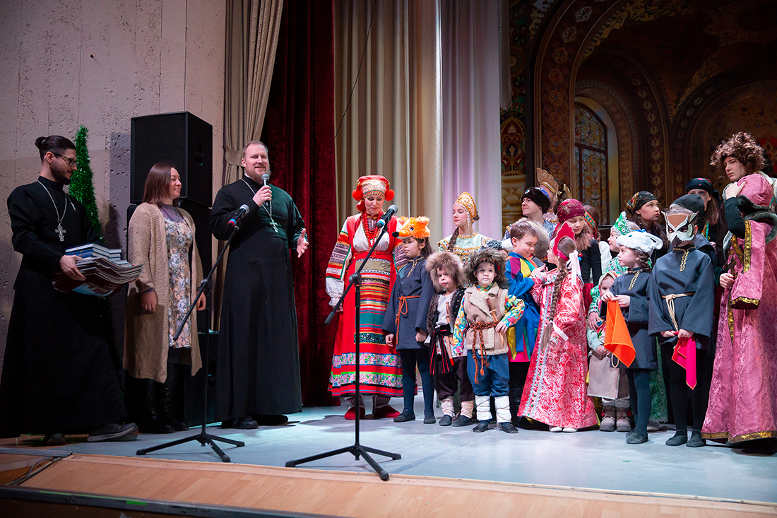 В завершении выступления директор Алексиевской гимназии Анна Викторовна Лыгина и духовник гимназии священник Павел Чекалин поблагодарили коллектив воскресной школы Ксениевского храма за выступление и вручили подарки.