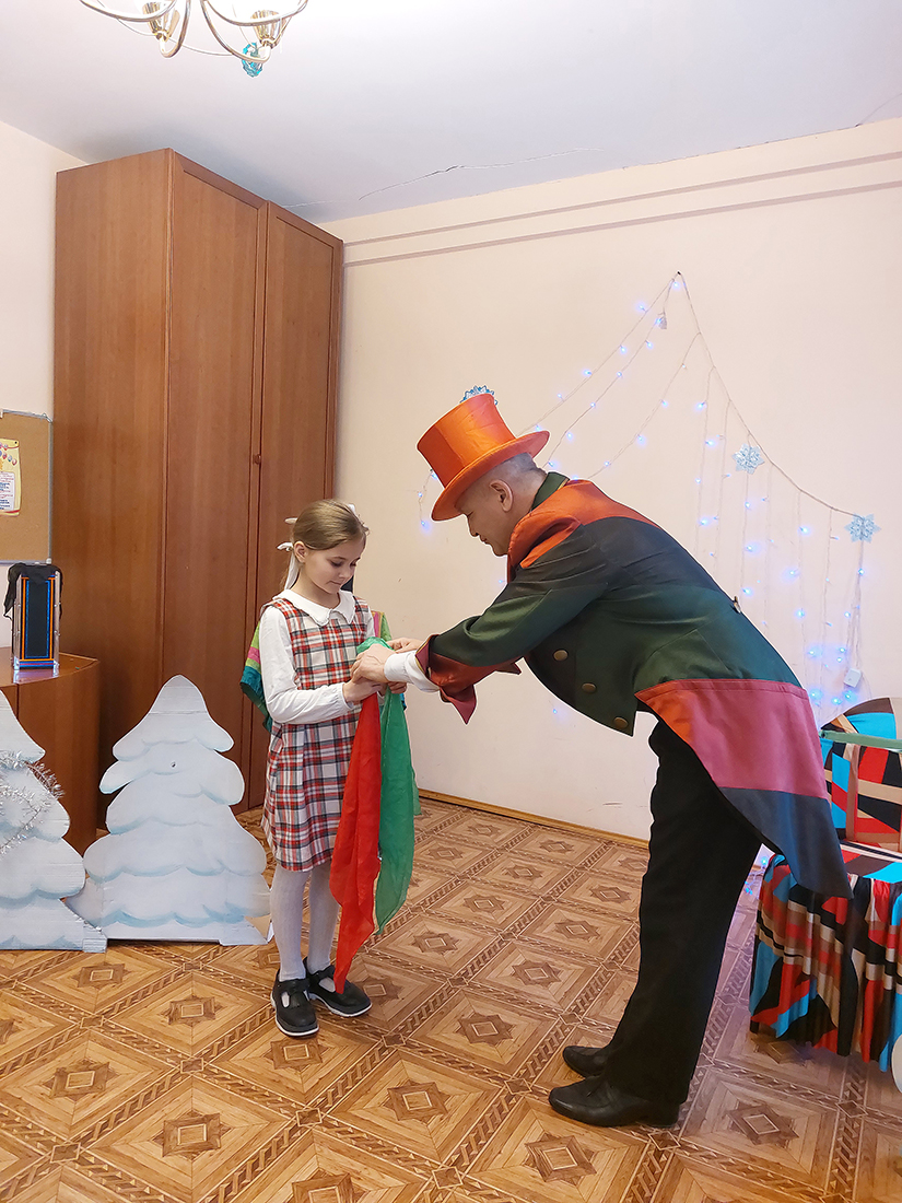 Настоятель храма священник Димитрий Выдумкин поздравил педагогов, родителей и учеников с Рождеством Христовым и сказал несколько слов о непреходящем смысле этого великого праздника. Затем учащиеся 2 и 4 классов пропели колядки и прочитали стихи, посвященные Рождеству Христову. Изюминкой праздника стало поздравление, подаренное зрителям постоянным прихожанином храма, режиссером Владимиром Беляевым. Владимир в этот волшебный праздник подарил всем особое волшебство - интереснейшие фокусы, в которых в качестве ассистентов принимали участие и учащиеся школы.
