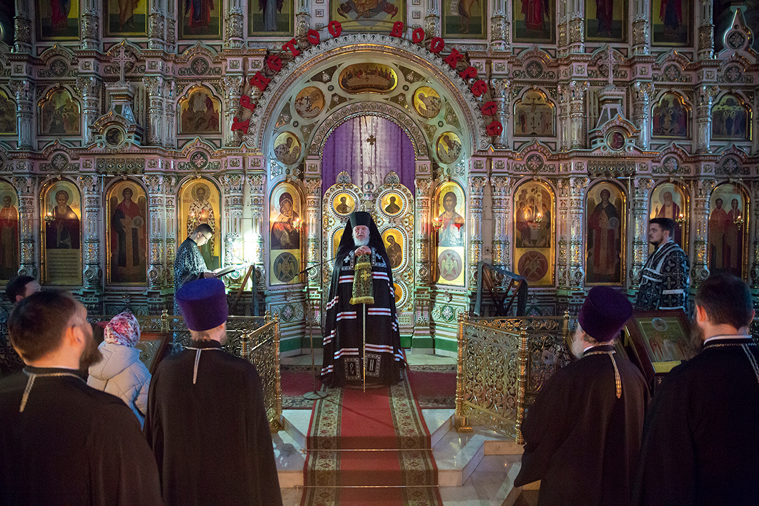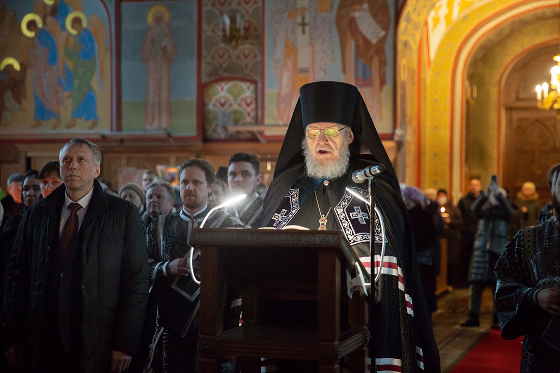 28 февраля, во вторник первой седмицы Великого поста, епископ Балашихинский и Орехово-Зуевский Николай совершил чтение Великого канона преподобного Андрея Критского в Троицком соборе города Щёлково.