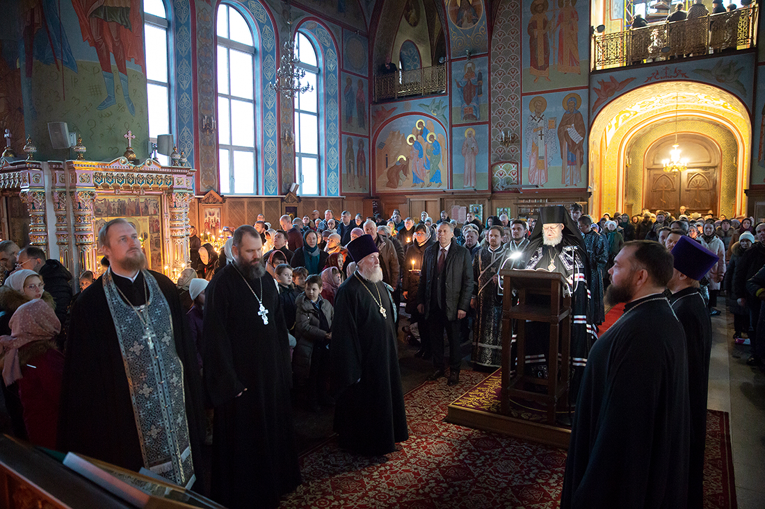 По окончании чтения Канона Владыка Николай обратился к духовенству и молящимся с архипастырским словом.