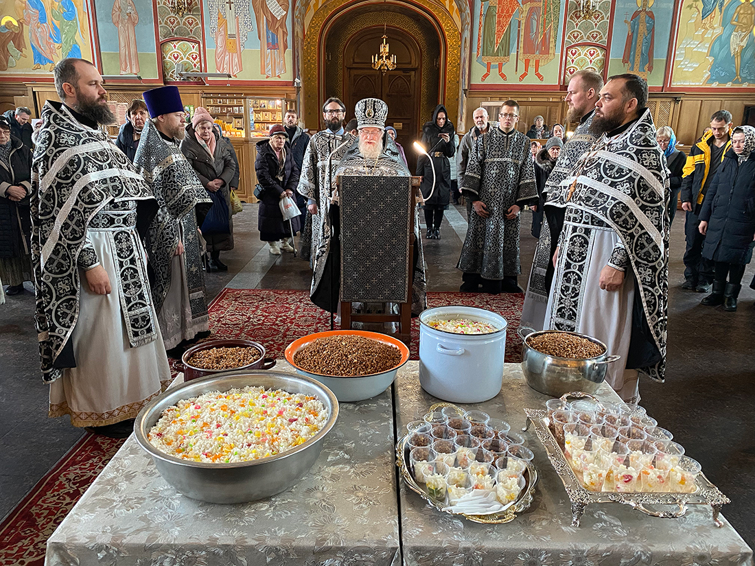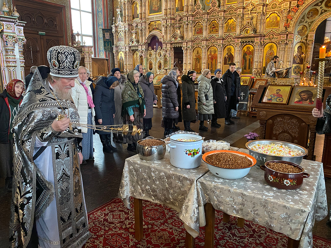 По окончании Литургии отец Андрей совершил молебен святому великомученику Феодору Тирону и освятил коливо, которое потом раздали всем молящимся.