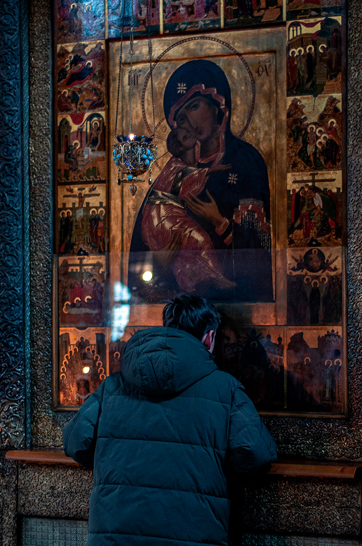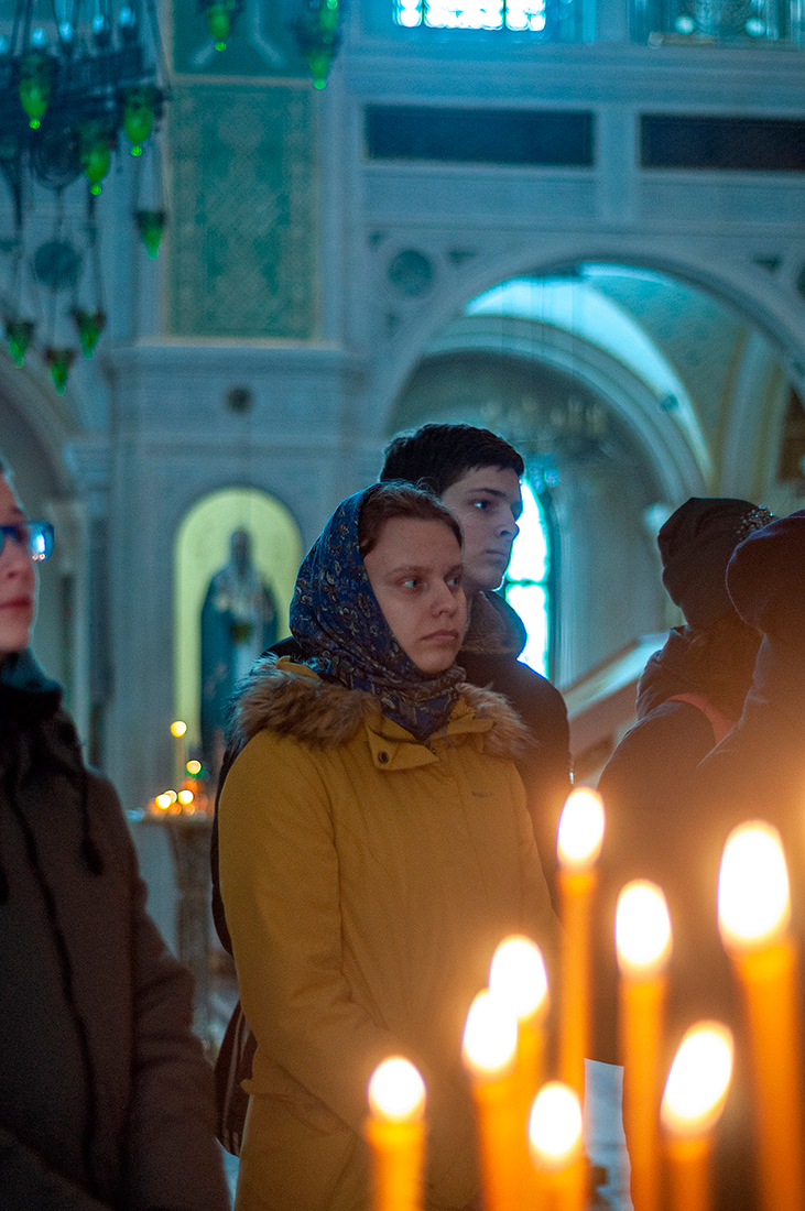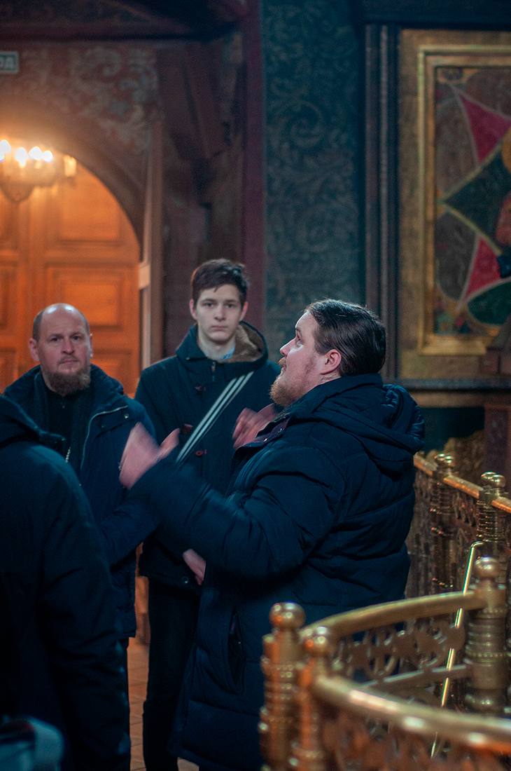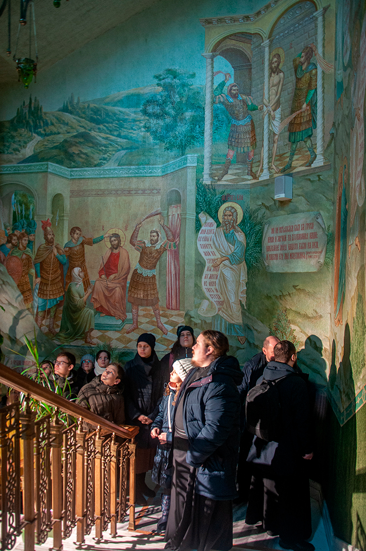 В ходе экскурсии молодежь посетила храм Сретения Владимирской иконы Божией Матери, где они смогли помолиться у келейной иконы архимандрита Иоанна Крестьянкина – Владимирской Божией Матери, и исполнить, совместно с молящимися в храме, молитву «Царице моя Преблагая». Именно этим чтимым списком старец благословил обитель Сретенского монастыря.