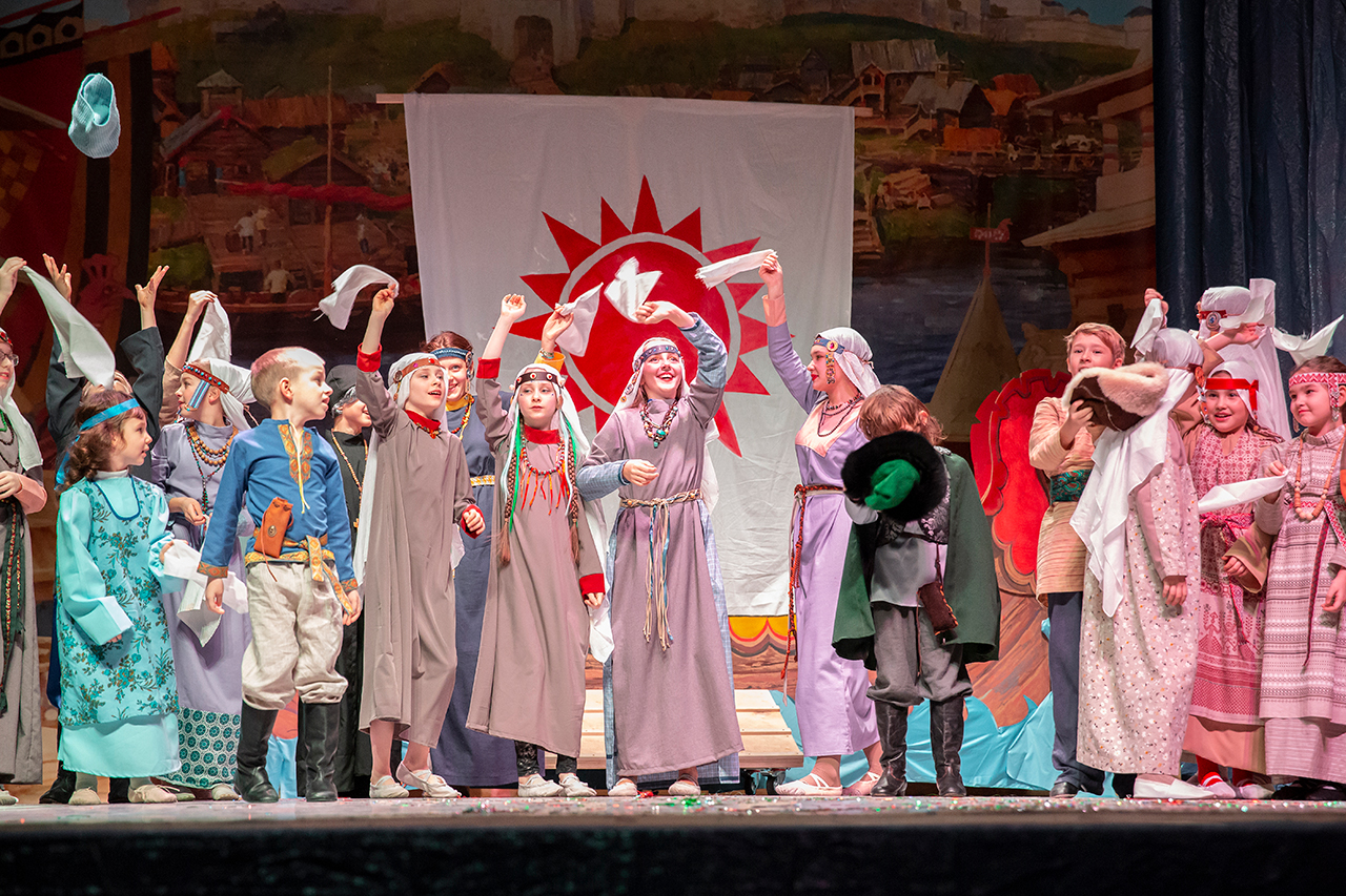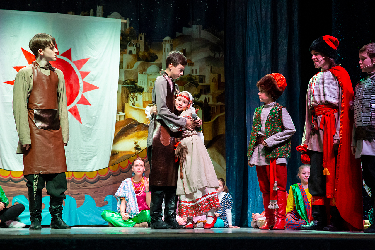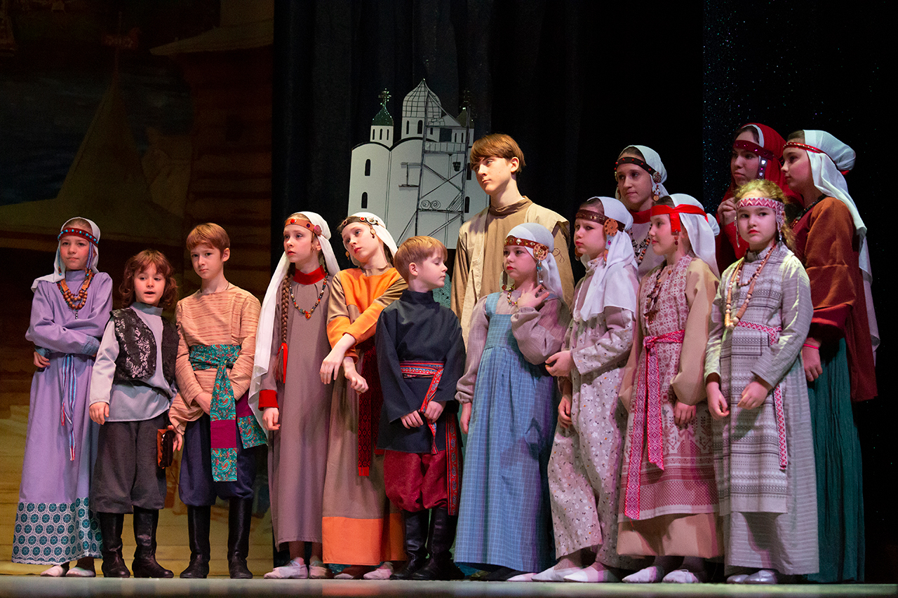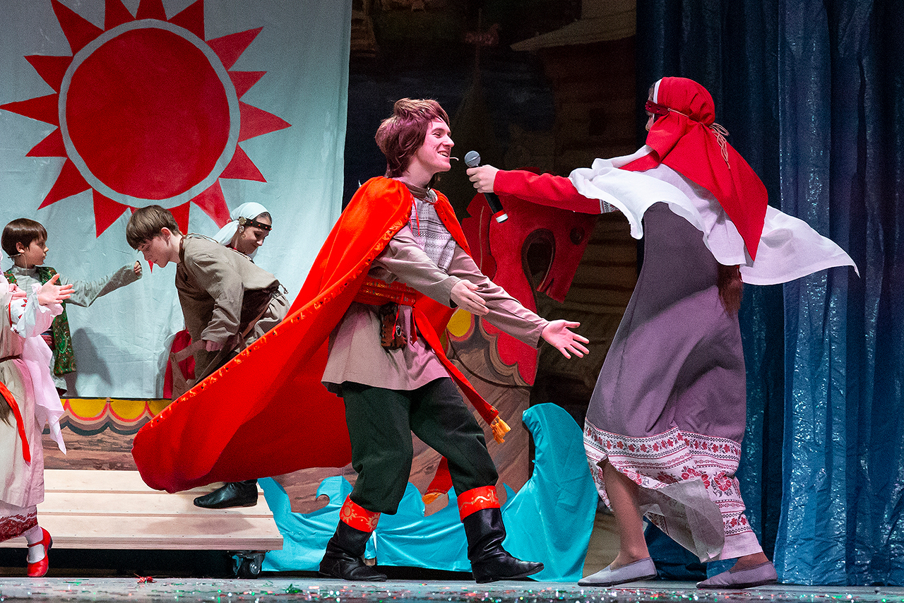 Многогранный сюжет, включающий фольклорные мотивы и захватывающую музыку, был талантливо и ярко представлен юными артистами, а великолепные костюмы и декорации позволили зрителям погрузиться в атмосферу приключений героя.