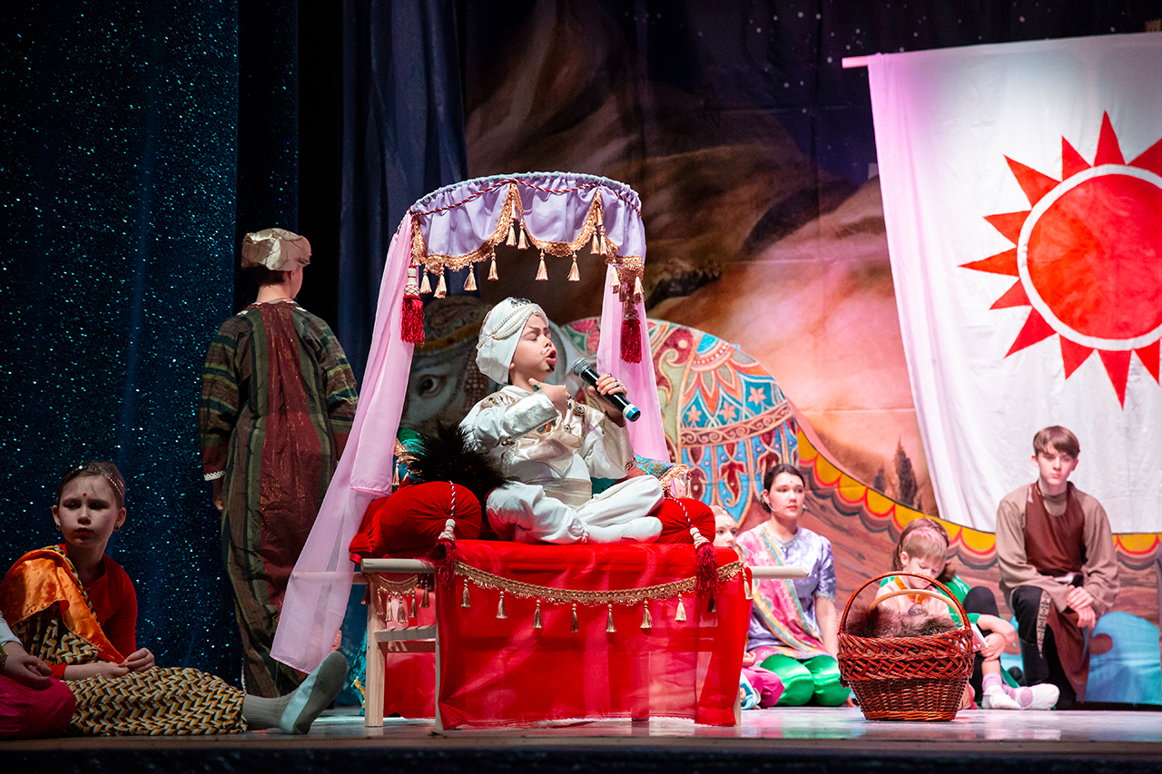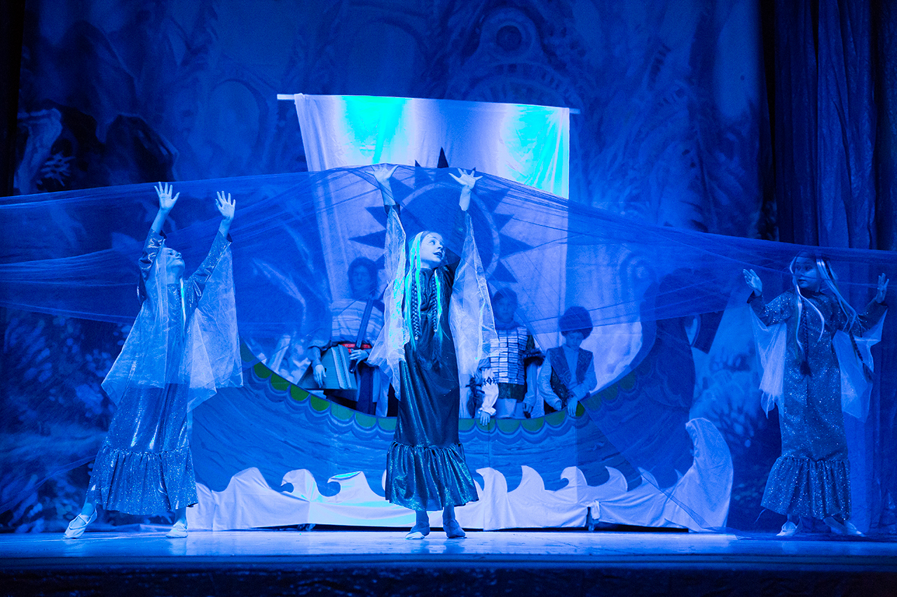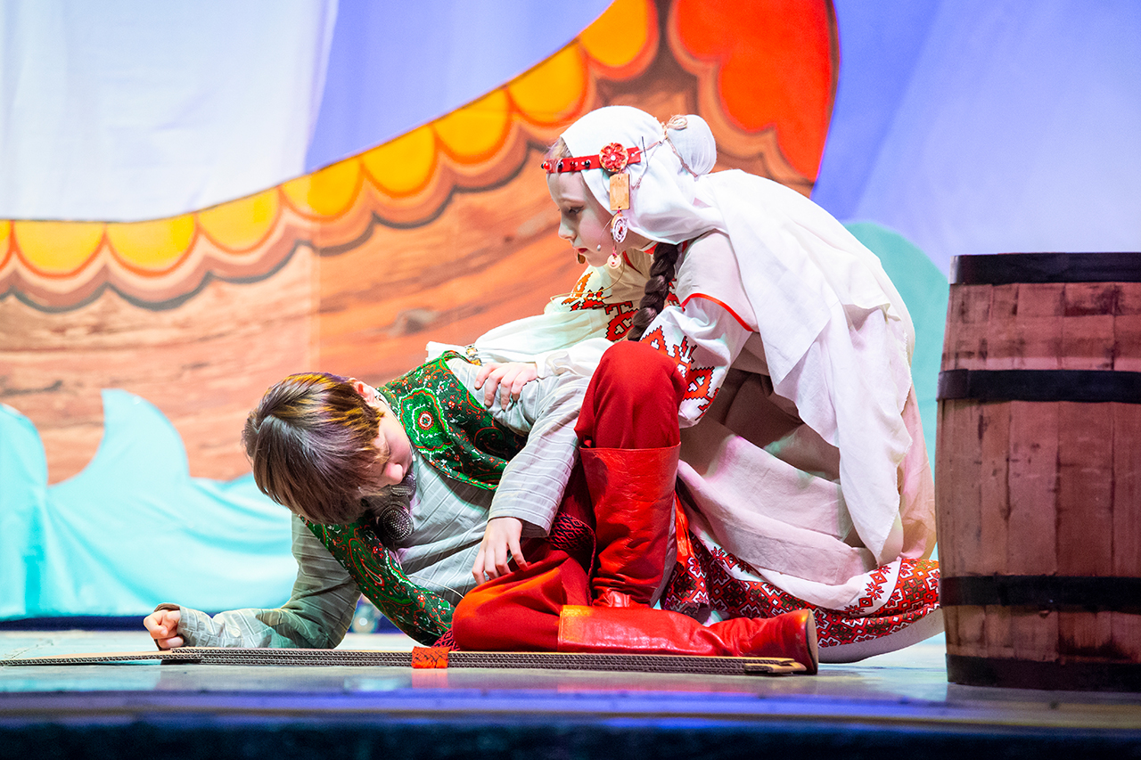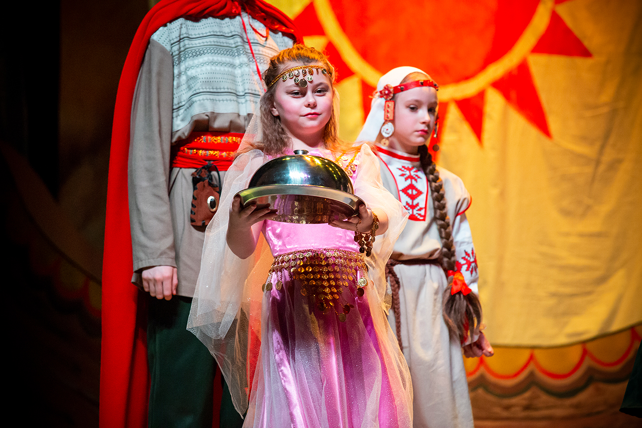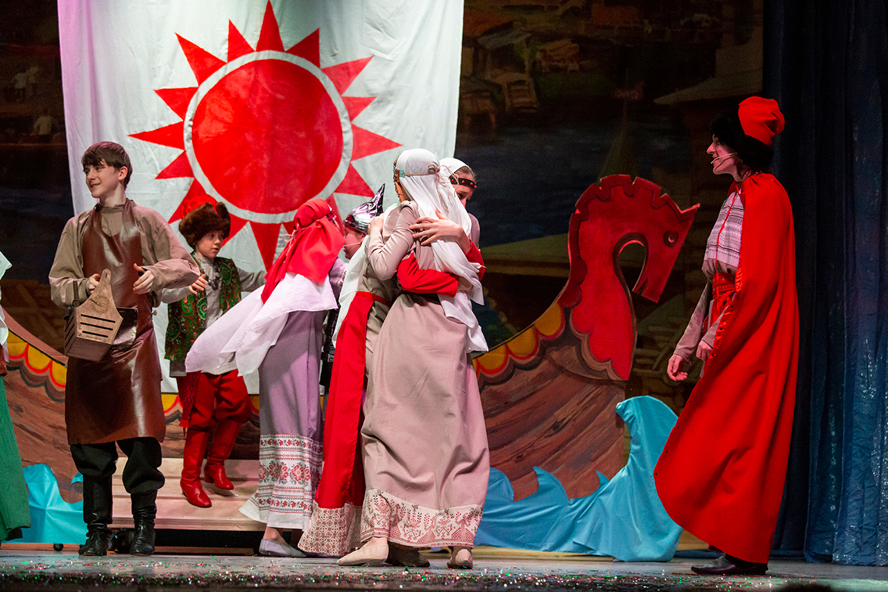 Многогранный сюжет, включающий фольклорные мотивы и захватывающую музыку, был талантливо и ярко представлен юными артистами, а великолепные костюмы и декорации позволили зрителям погрузиться в атмосферу приключений героя.