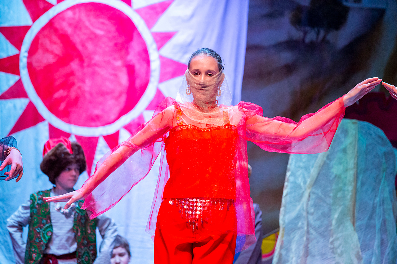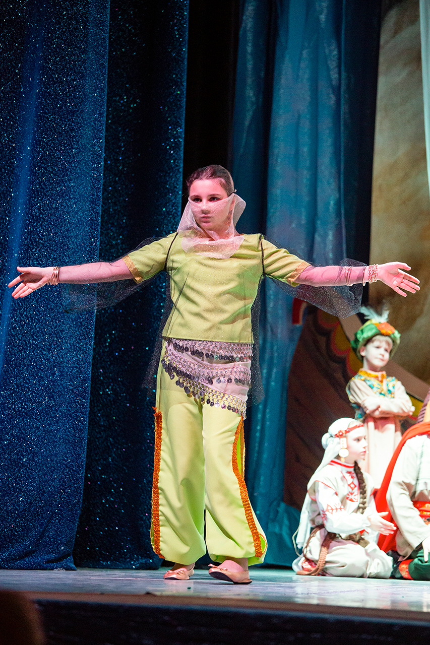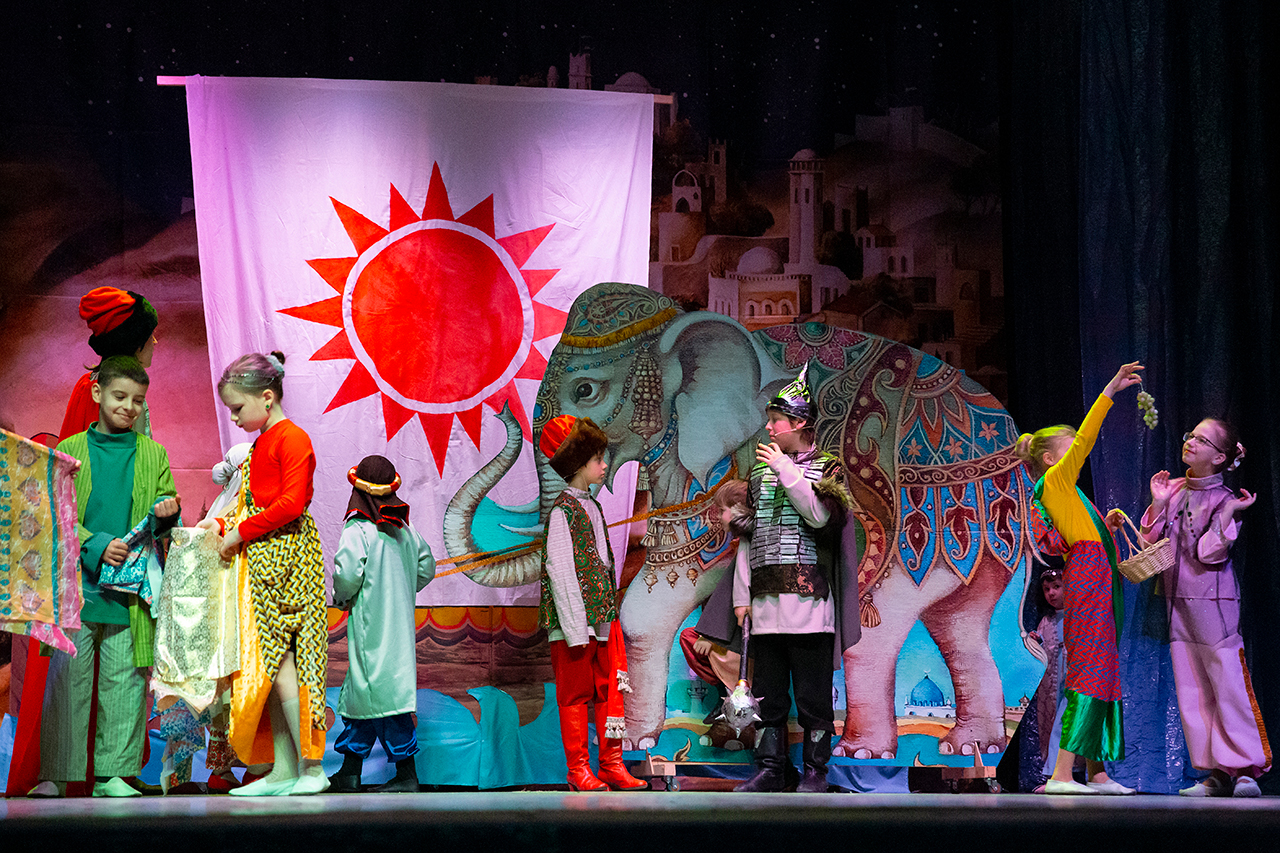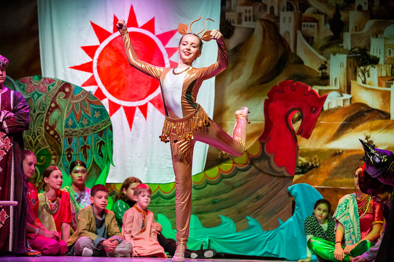 Многогранный сюжет, включающий фольклорные мотивы и захватывающую музыку, был талантливо и ярко представлен юными артистами, а великолепные костюмы и декорации позволили зрителям погрузиться в атмосферу приключений героя.