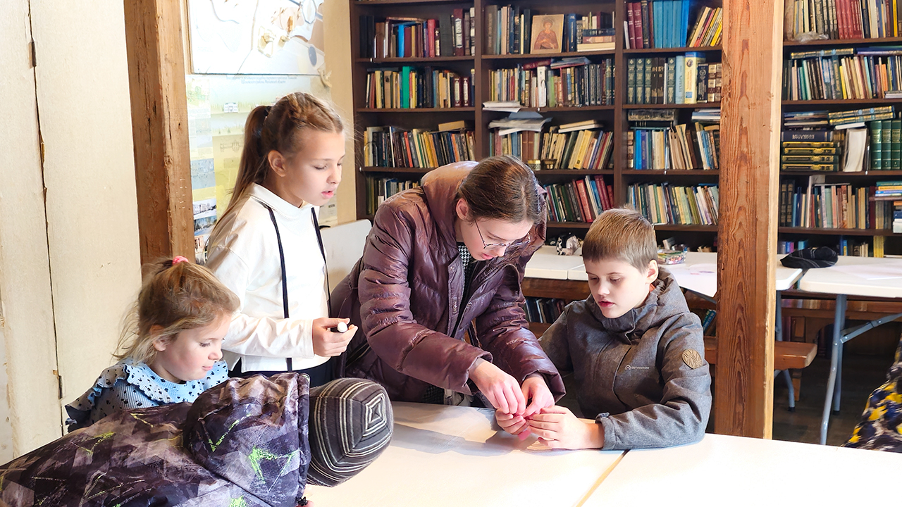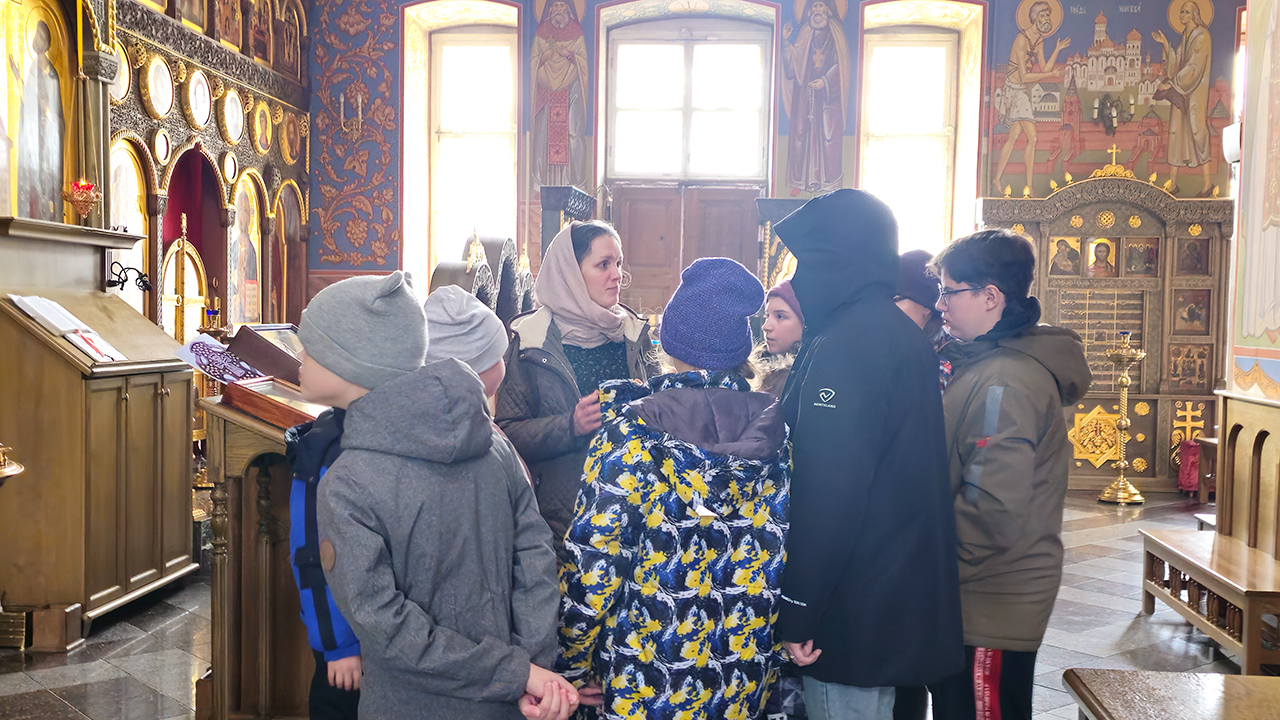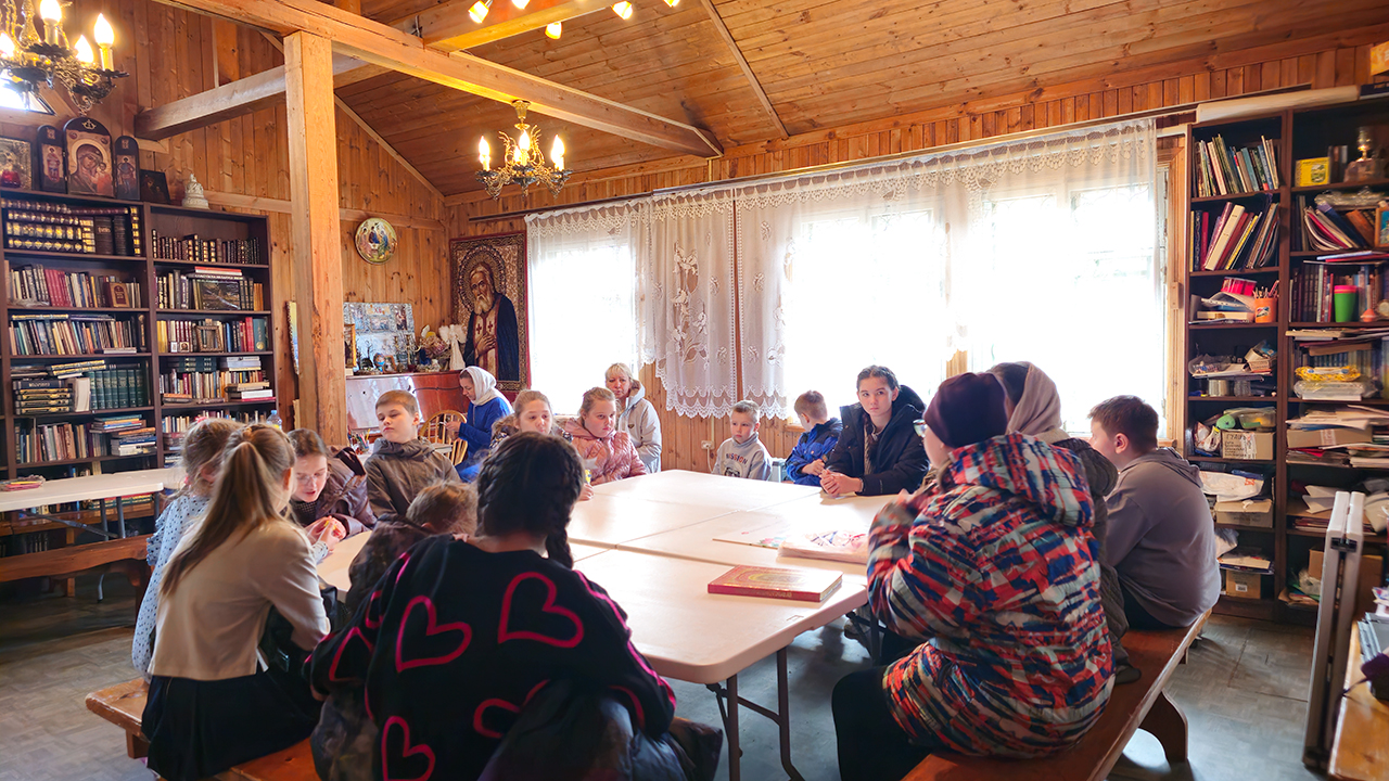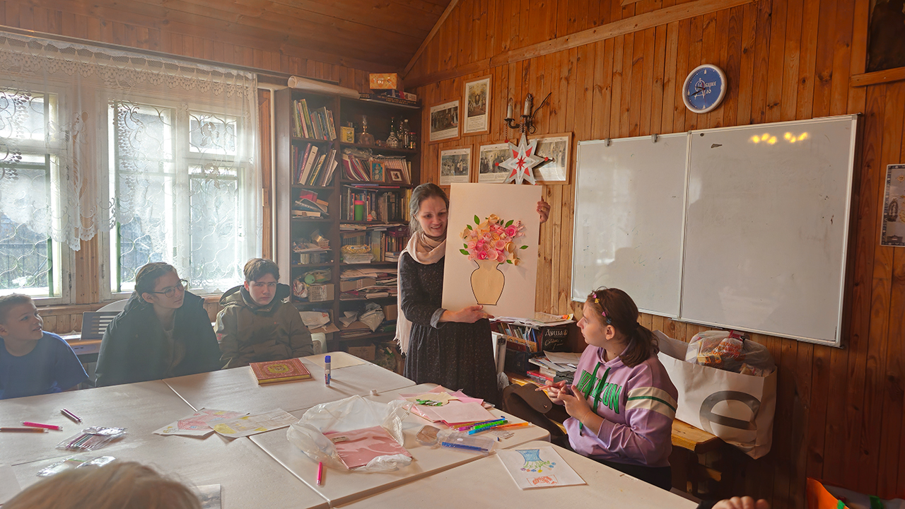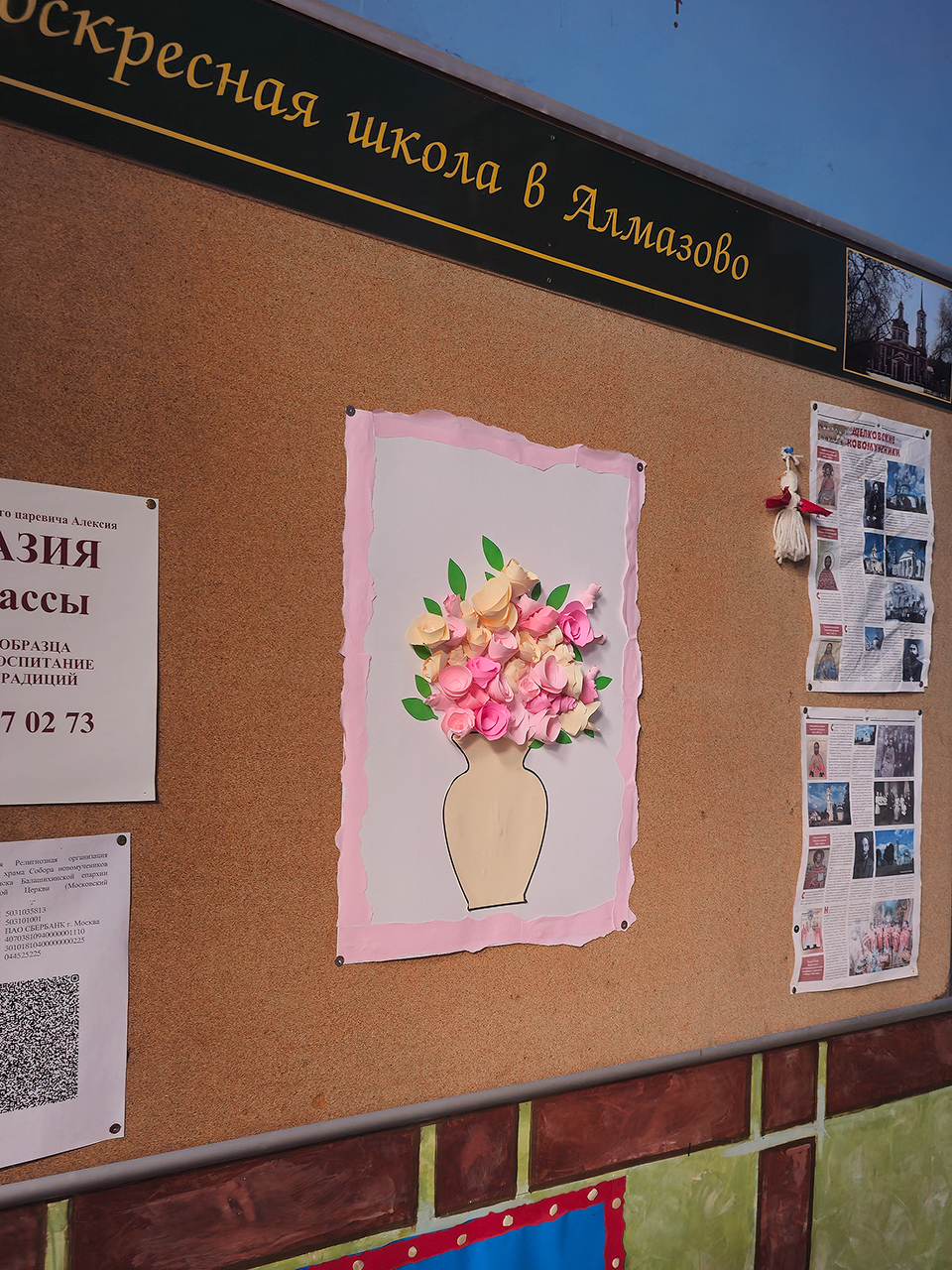 Храм посетили воспитанники семейного центра «Доверие» деревни Алмазово. Ребята помолились на Литургии, причастились Святых Христовых Таин, а потом, пообедав, приняли участие в общем уроке. Занятие было посвящено приближающемуся празднику Казанской иконы Божией Матери. В конце урока учащиеся воскресной школы вместе с гостями сделали объёмную аппликацию – букет Пресвятой Богородице.