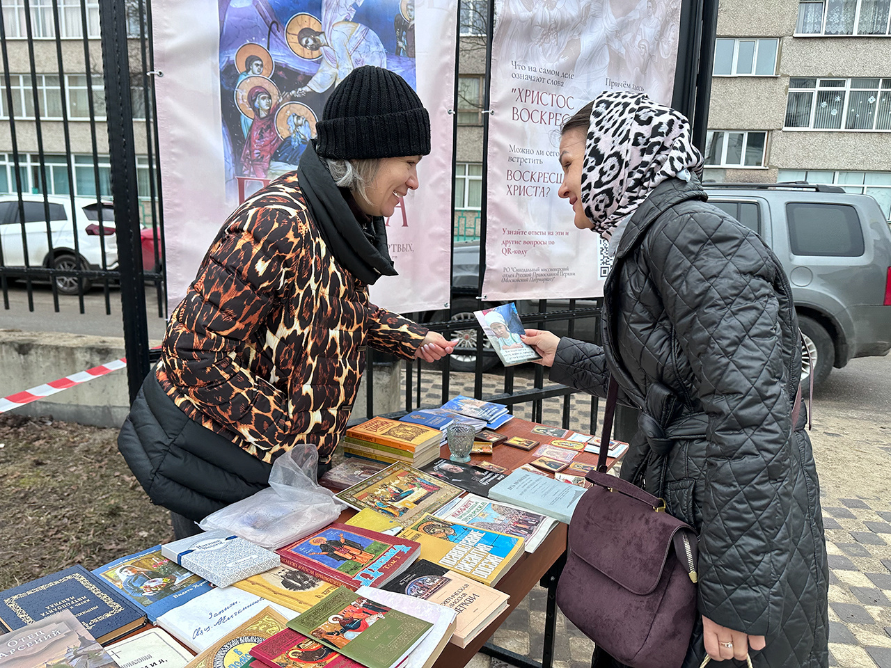 Традиционно акция не ограничилась раздачей листовок. В Державном храме города Фрязино и в приписном Георгиевском храме СНТ «Заозёрный» всем участникам встречи дарили православную литературу — книги и брошюры, помогающие глубже понять основы веры и значение главного христианского торжества.