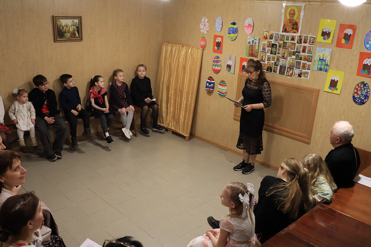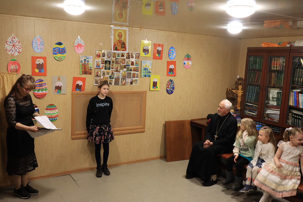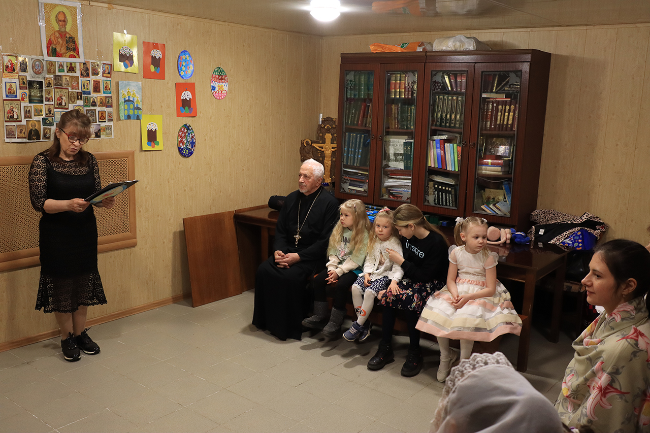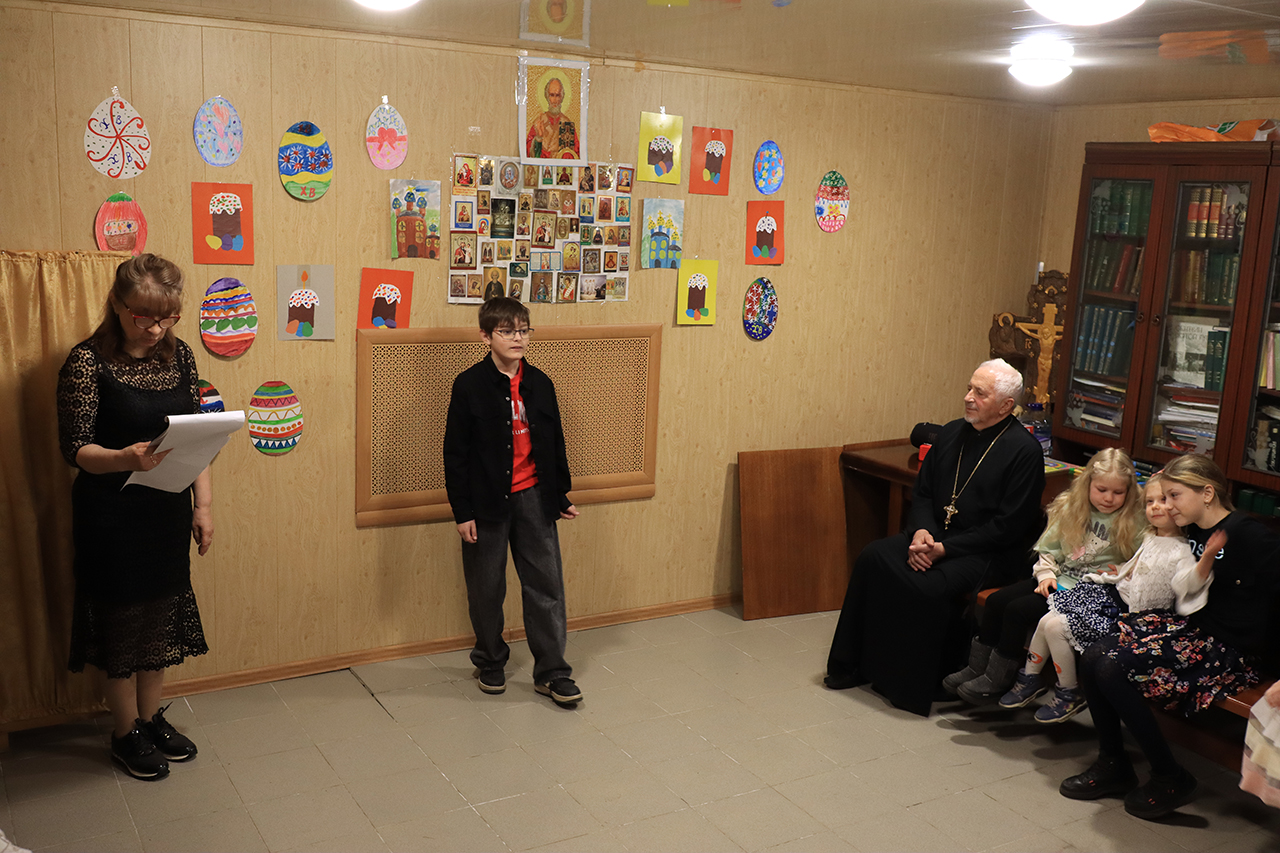 Дети прочли стихи, спели песни о Пасхе. На празднике были родители воспитанников воскресной школы, прихожане и настоятель храма протоиерей Олег Лахманюк. Праздник прошёл интересно, радостно, ведь Христос Воскрес!