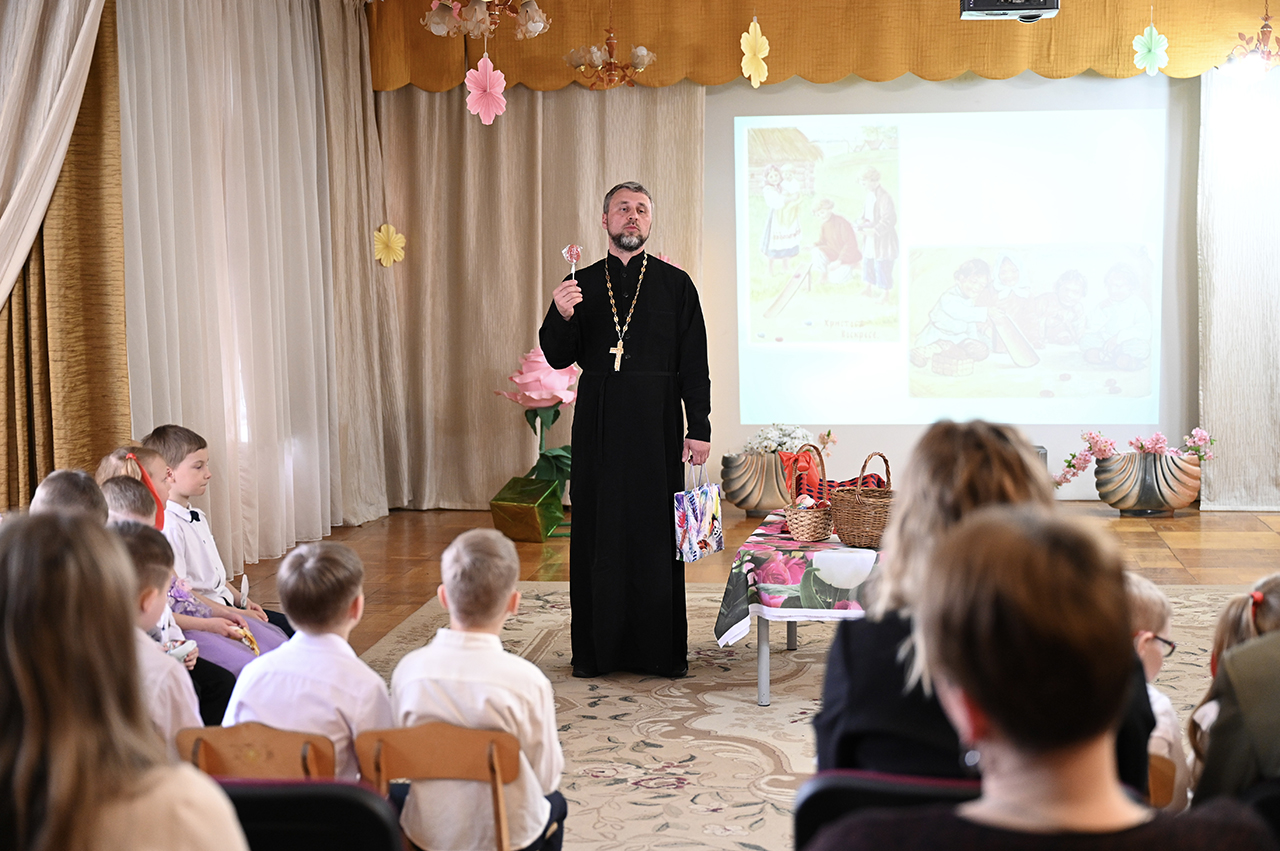 На праздник пришел настоятель храма иконы Божией Матери «Спорительница хлебов» города Щёлково священник Александр Мороков, который поздравил всех и подарил подарки детям.