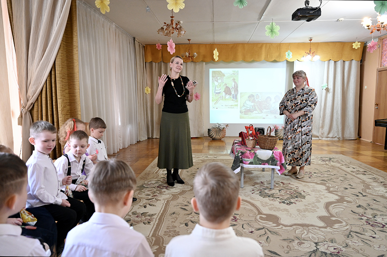 Необычно то, что родители принимали активное участие – они были и ведущими в сценке «Красное яичко» – история про Марию Магдалину и императора; и читали стихи и даже озвучили презентацию о Воскресении Христа и традициях празднования. Дети катали яички с горки и получали сладкие сувениры.