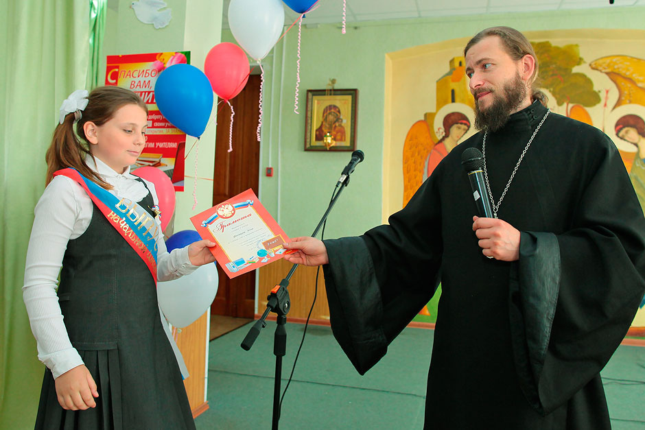 Не только выпускников, но и отличников чествовали на этом празднике, заведующий Щелковским отделением иерей Максим Алифанов торжественно наградил ребят грамотами за отличную учебу и примерное поведение.
