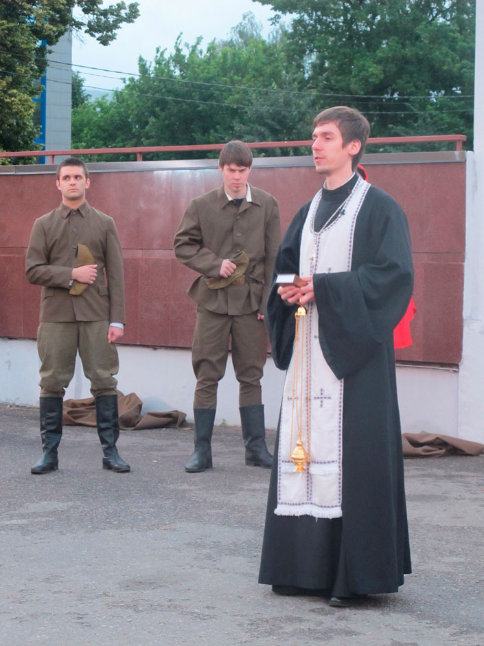После небольшой литературной композиции на Аллее памяти к собравшимся обратился руководитель Молодежного объединения Троицкого собора г. Щелково священник Иоанн Лапкин.