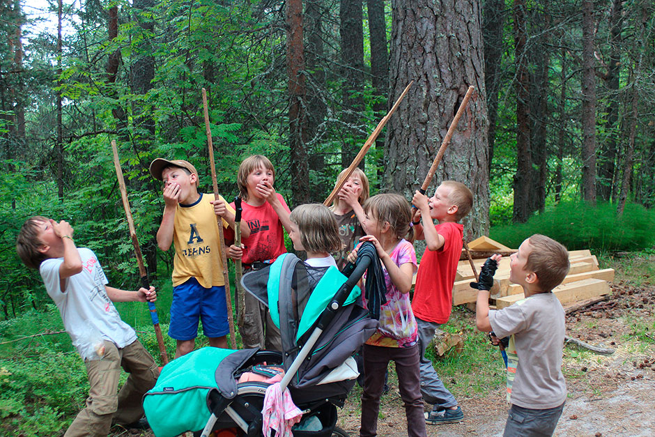 Один из дней пребывания на острове был посвящен пешему походу по острову. Взрослые и дети прошли по каменистым тропам острова и познакомились с природой северного края. На обратном пути путешественники побывали в музее деревянного зодчества «Малые Карелы», на большой территории которого собраны различные постройки: рубленые колодцы, амбары, избы и удивительные по красоте часовни и храмы.