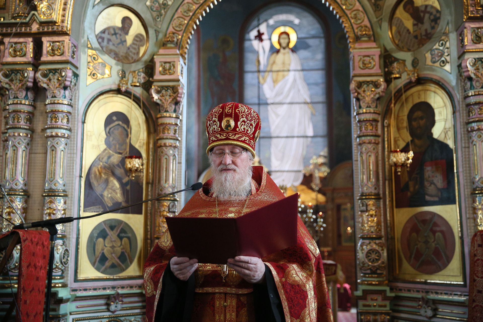 Во время отпевания отец Андрей зачитал соболезнование Святейшего Патриарха Кирилла в связи с кончиной В.М. Зайцева: