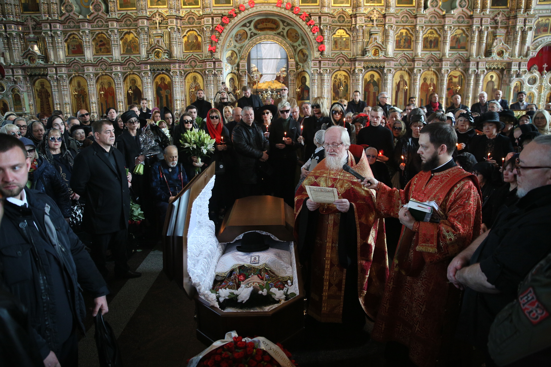На отпевании присутствовали родственники, коллеги и друзья усопшего.