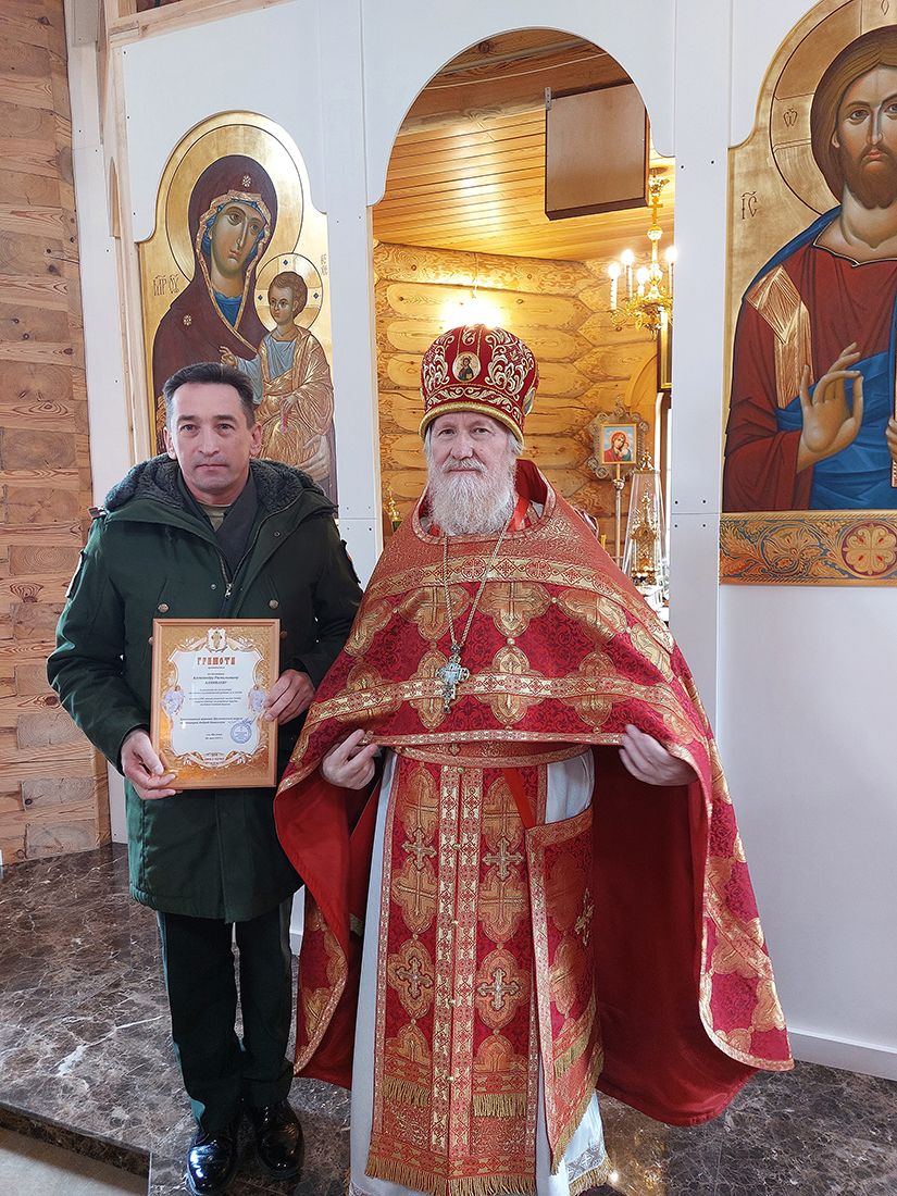 Отец Андрей поздравил прихожан с престольным праздником, а командира воинской части и его заместителя отметил благословенными грамотами Щёлковского благочиния.