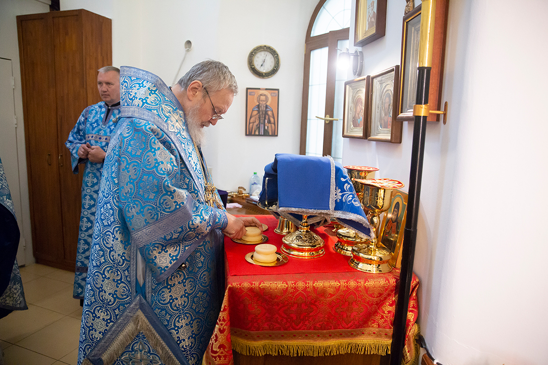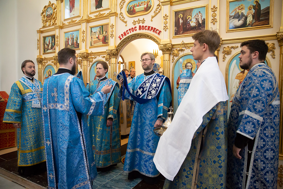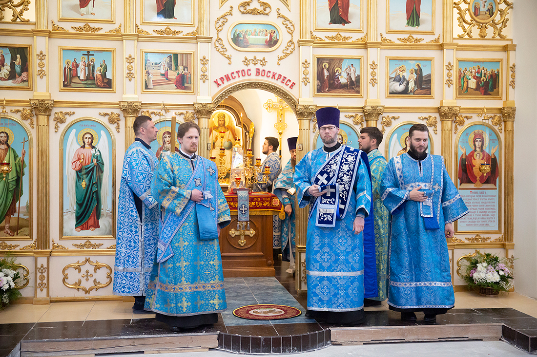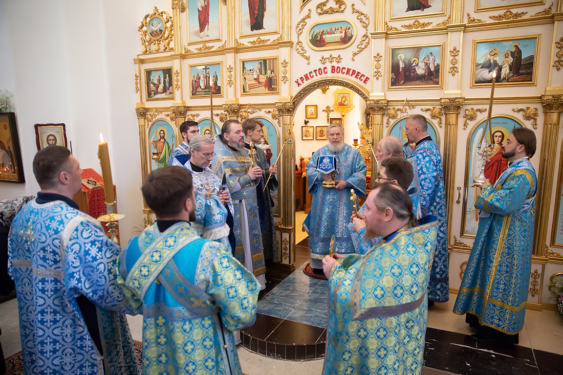 Его Преосвященству сослужили благочинный Щёлковского церковного округа протоиерей Андрей Ковальчук, настоятель храма иконы Божией Матери «Неупиваемая Чаша» посёлка Литвиново священник Алексий Кукушкин, эконом Балашихинского епархиального управления, настоятель Александро-Невского храма города Балашихи протоиерей Александр Ивлев, настоятель Державного храма города Фрязино священник Дмитрий Третьяков и настоятель храма Боголюбской иконы Божией Матери деревни Мишнево иеромонах Никон (Сайфулин).