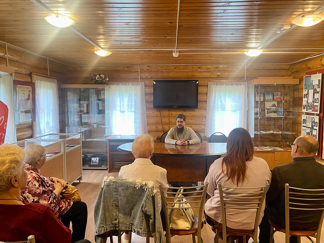 25 мая в доме-музее героя Советского Союза Ивана Ивановича Иванова города Фрязино состоялась православная беседа с настоятелем Державного храма наукограда священником Димитрием Третьяковым. Темой беседы стал праздник Вознесения Господня.