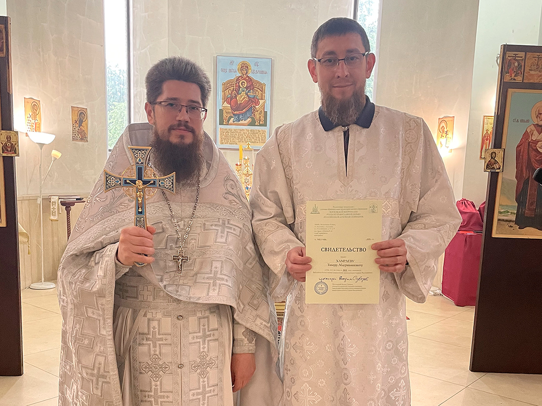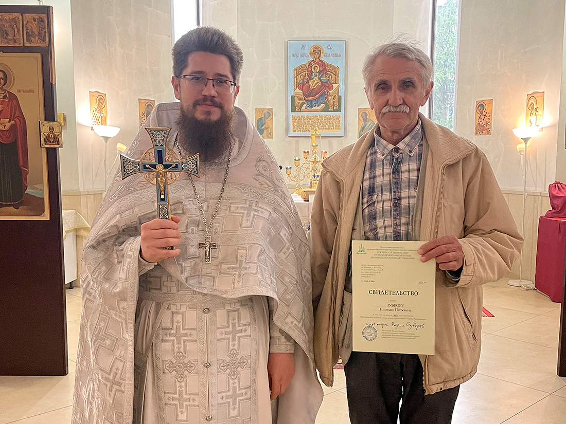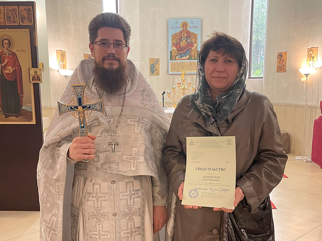 По окончании Божественной Литургии преподаватели и слушатели курсов совершили благодарственный молебен. Настоятель храма священник Димитрий Третьяков вручил выпускникам свидетельства об окончании курсов и поздравил слушателей с окончанием учебного года.