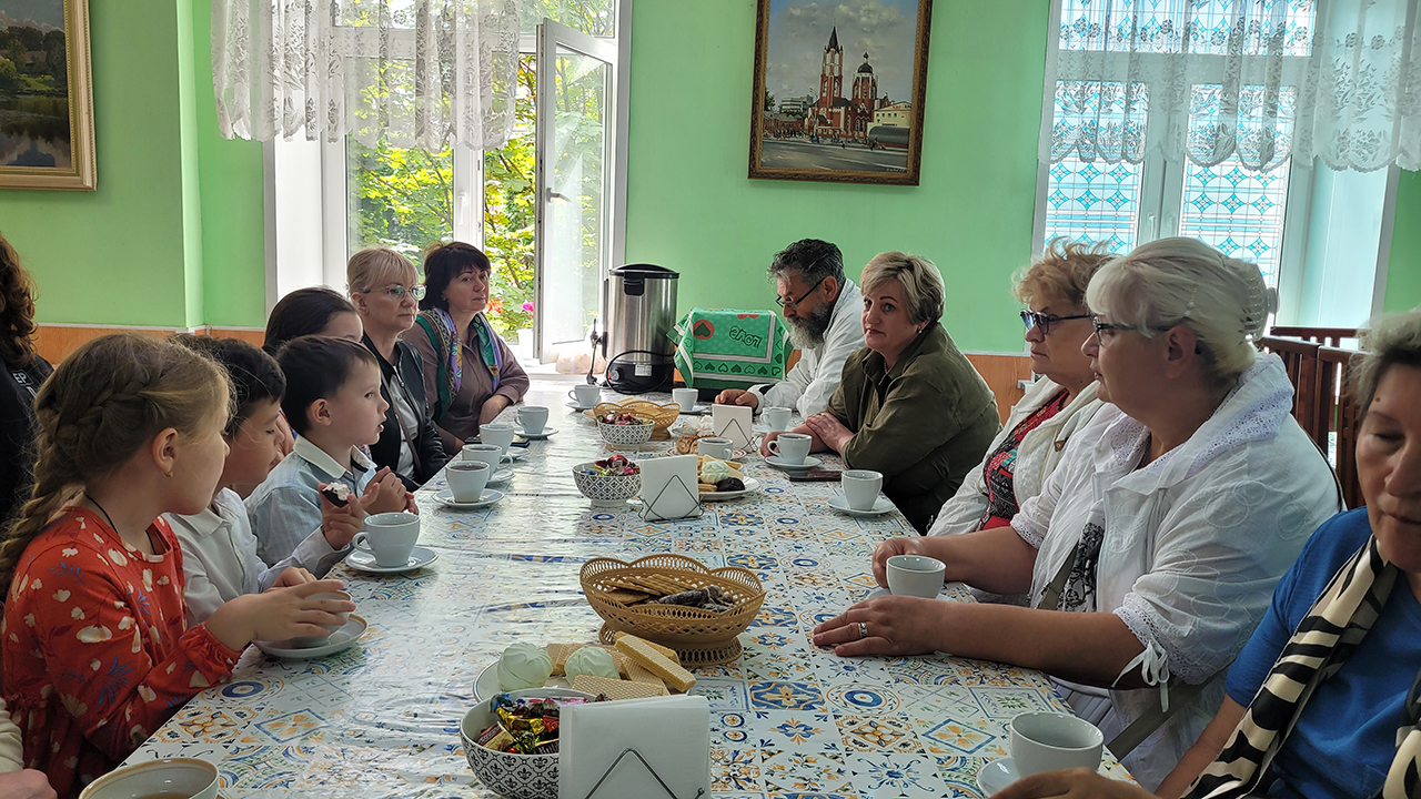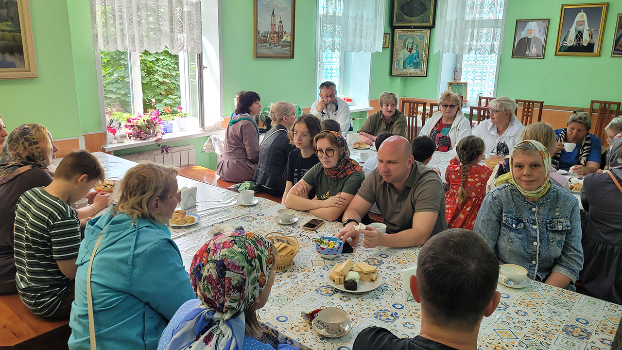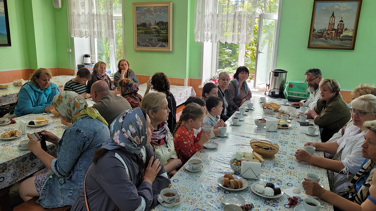 «Православная гостиная» продолжилась за чаепитием в трапезной Троицкого собора, где собравшиеся могли по-семейному пообщаться, а также получить ответы на различные вопросы о поддержке семей.