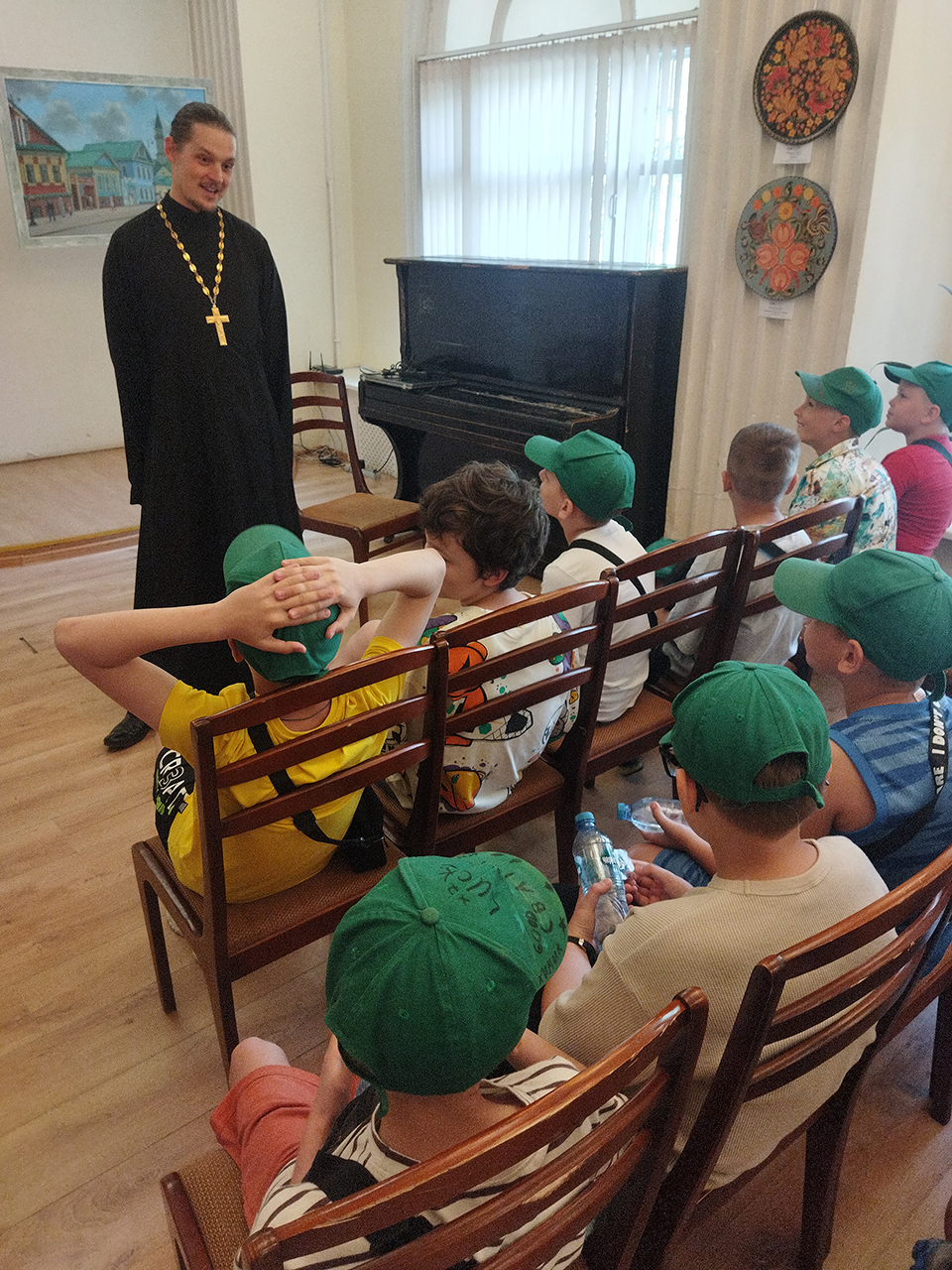 Днём позже отец Димитрий встретился с воспитанниками летнего лагеря дневного пребывания в Щёлковской гимназии №6. В мероприятии приняли участие заместитель директора по воспитательной работе Сабина Стукачева, педагоги гимназии. Учащиеся узнали о православном понимании семьи и о святых благоверных князе Петре и княгине Февронии.