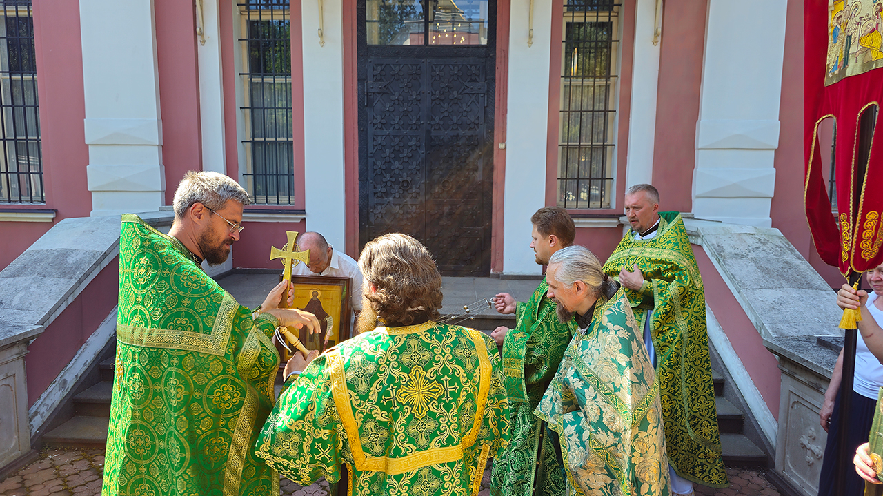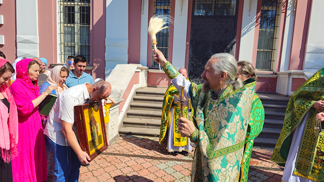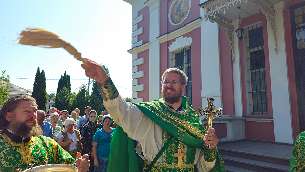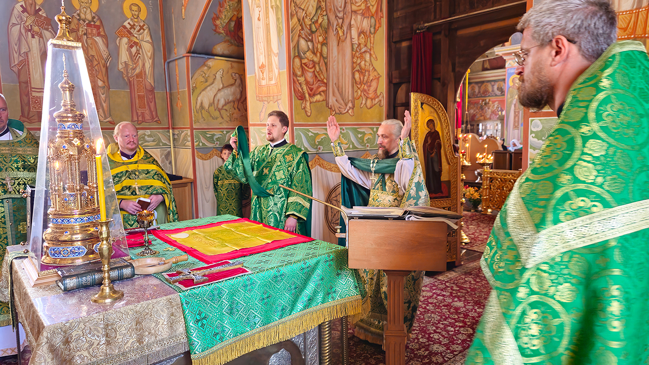 После Литургии и Праздничного Крестного хода, отец Илия обратился к батюшкм и прихожанам с приветственным словом, поблагодарил за совместную молитву.