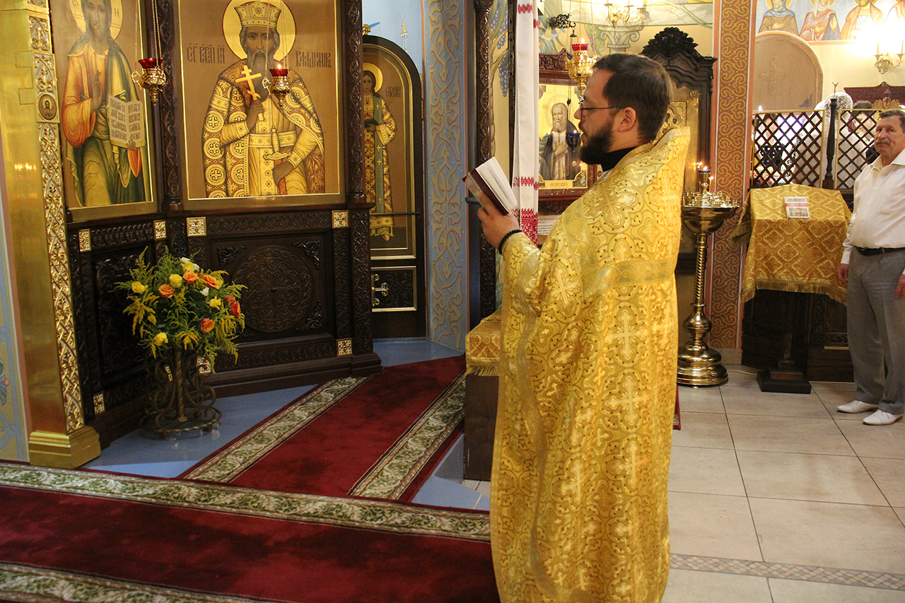 После Литургии и Праздничного Крестного хода, благочинный отец Андрей обратился к батюшкам и прихожанам со словами поздравления с престольным праздником.