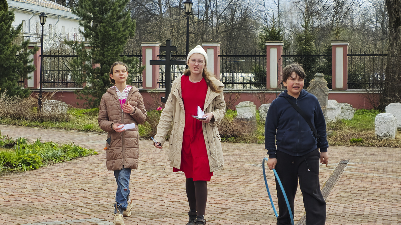 Ребятам предстояло тщательно, до мелочей изучить территорию родного храма, проявить сообразительность и наблюдательность. Единая команда участников с путевыми листами в руках искала удивительное: куст, который цветёт раньше, чем распускаются его листочки; перевёрнутые фонари; лестницу с тремя ступеньками (их же вроде везде больше?).