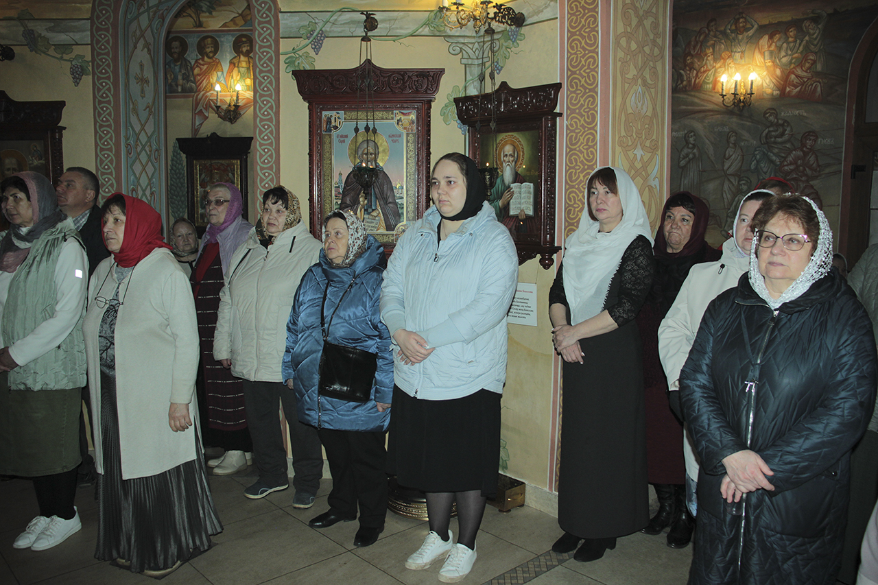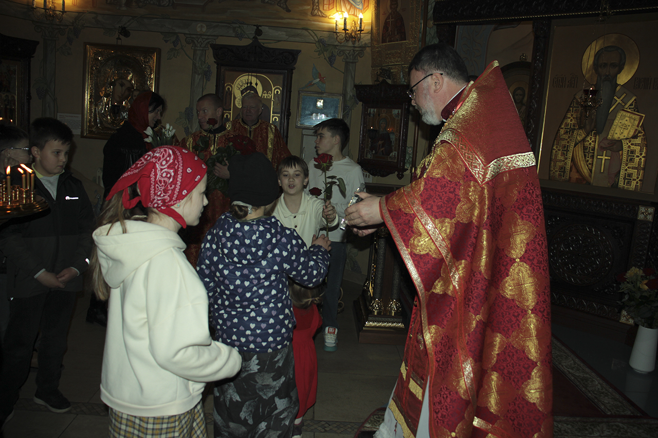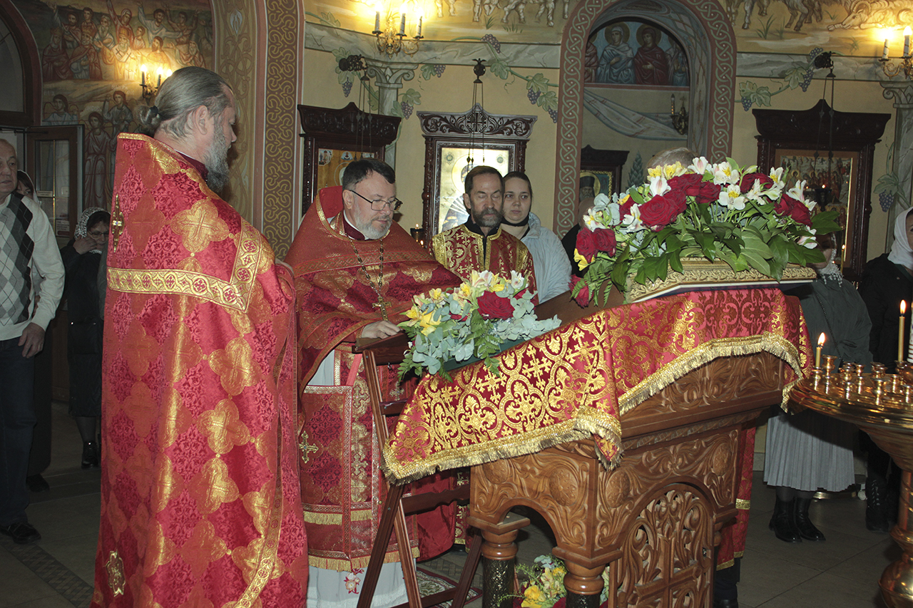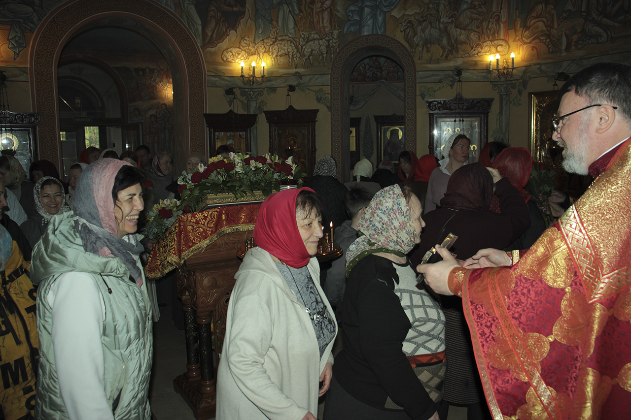 Божественную литургию совершил настоятель храма священник Виктор Долгих в сослужении клирика храма священника Андрея Кагарманова. В проповеди отец Виктор обратился к матерям, женам, сестрам, дочерям, напоминая им, что их служение семье и ближним – это путь к Богу. Всем прихожанкам Князь-Владимирского храма были преподнесены цветы.