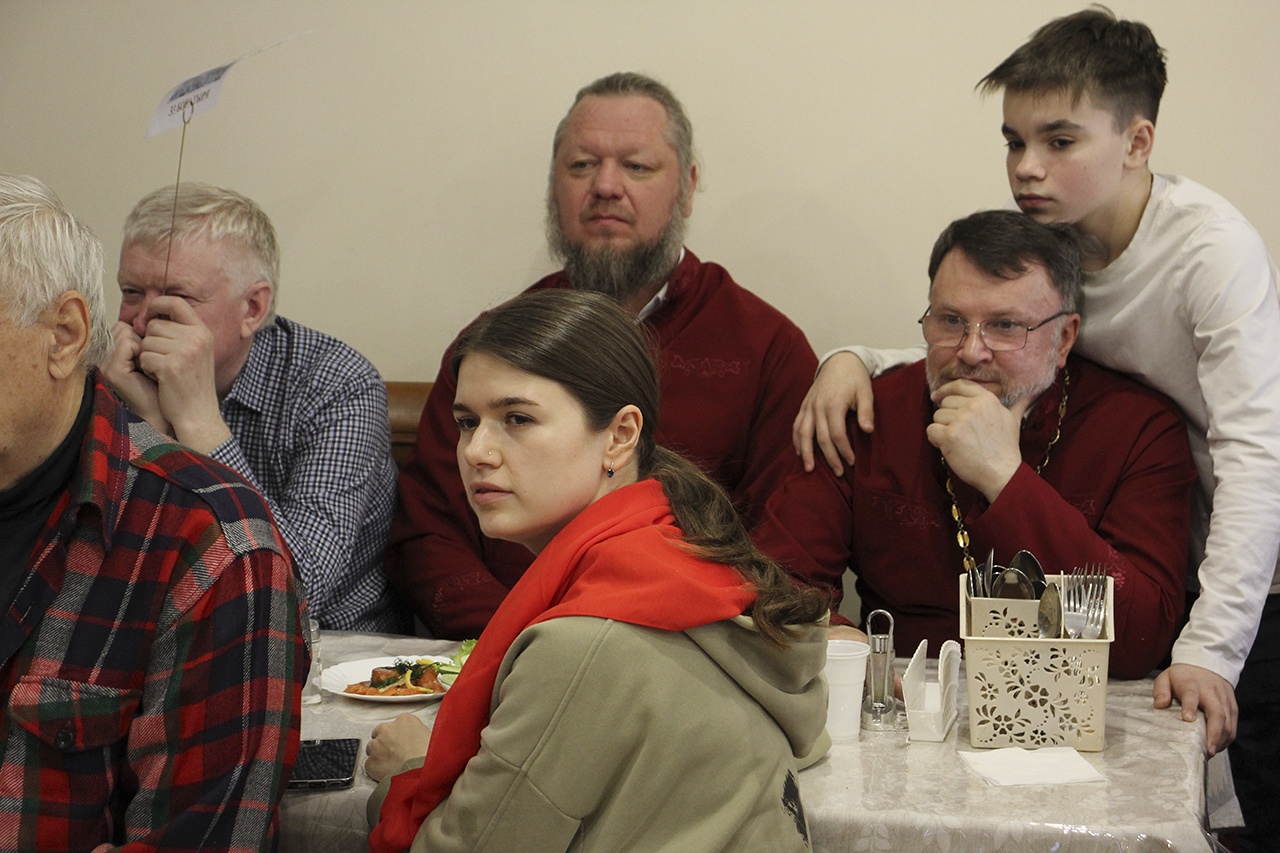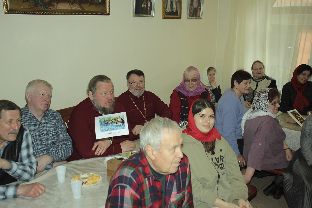 После праздничной трапезы, приготовленной мужской половиной прихожан, творческой студией Князь-Владимирского храма была проведена викторина, посвященная празднику жен-мироносиц. В ней приняли участие прихожане всех возрастов. Викторина была составлена из вопросов, относящихся к православной вере, музыке и культуре.