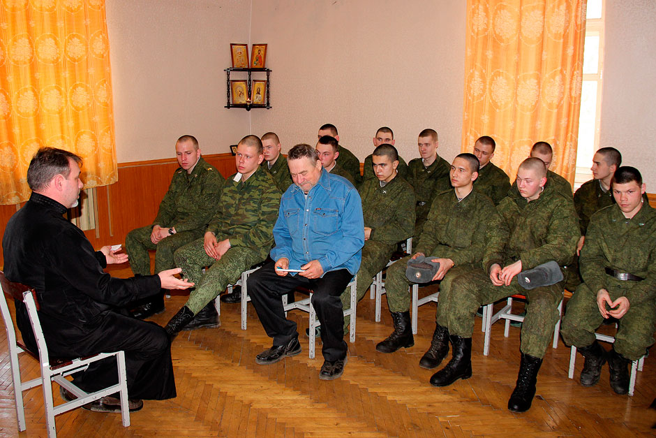 Военнослужащие часто бывают в Гребнево, оказывая помощь в благоустройстве храмовой территории. Поэтому встретились в непринужденной обстановке как старые знакомые. Диакон Владимир рассказал молодым солдатам о Православии и о Таинстве крещения. Молодые люди сегодня вдали от дома. На кого опереться в трудную минуту? Только на Бога. Но вначале нужно креститься. После объяснений отца Владимира двое ребят высказали желание приехать в храм в ближайшее время для совершения этого Таинства. «Сейчас идет Великий пост. И если в армии трудно держать пост телесный, то держать пост духовный и молиться необходимо всем», – продолжил беседу диакон Владимир. Говорили и о том, как ориентироваться в современном мире, на каком основании строить жизнь? Ответ дан в выполнении десяти заповедей, о которых многие ребята даже не знали. Труд этот не тяжел, путь к Богу радостен. В храме ребят встретит любовь – вот самое важное, что поняли военнослужащие из сегодняшней беседы.