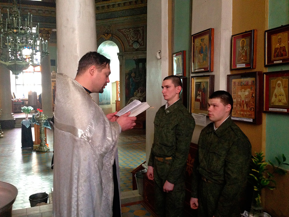 30 марта состоялась встреча инициативной группы храма Гребневской иконы Божией Матери с военнослужащими срочной службы воинской части г. Фрязино. Группу прихожан возглавляли диакон Владимир Лебедев и староста храма Михаил Грангольм.