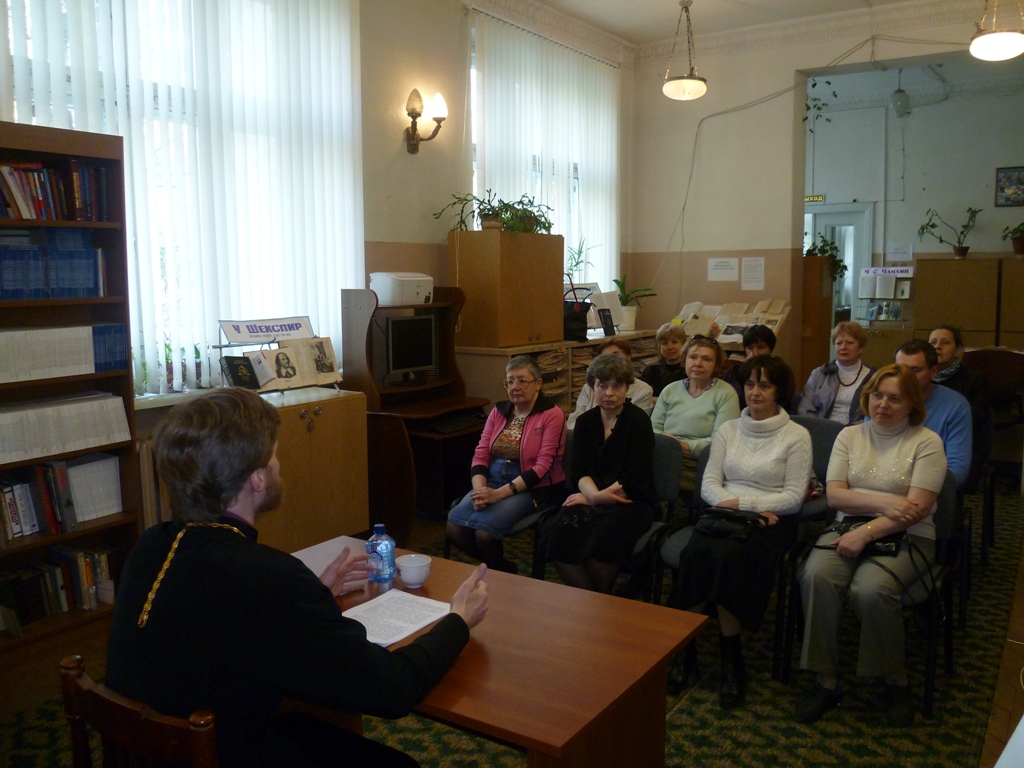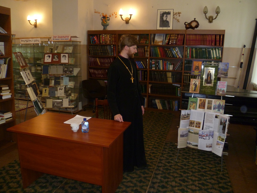 29 апреля в Центральной городской библиотеке города Фрязино состоялась встреча жителей с настоятелем Державного храма священником Димитрием Поповским на тему «Неизвестные факты из жизни преподобного Сергия Радонежского».
