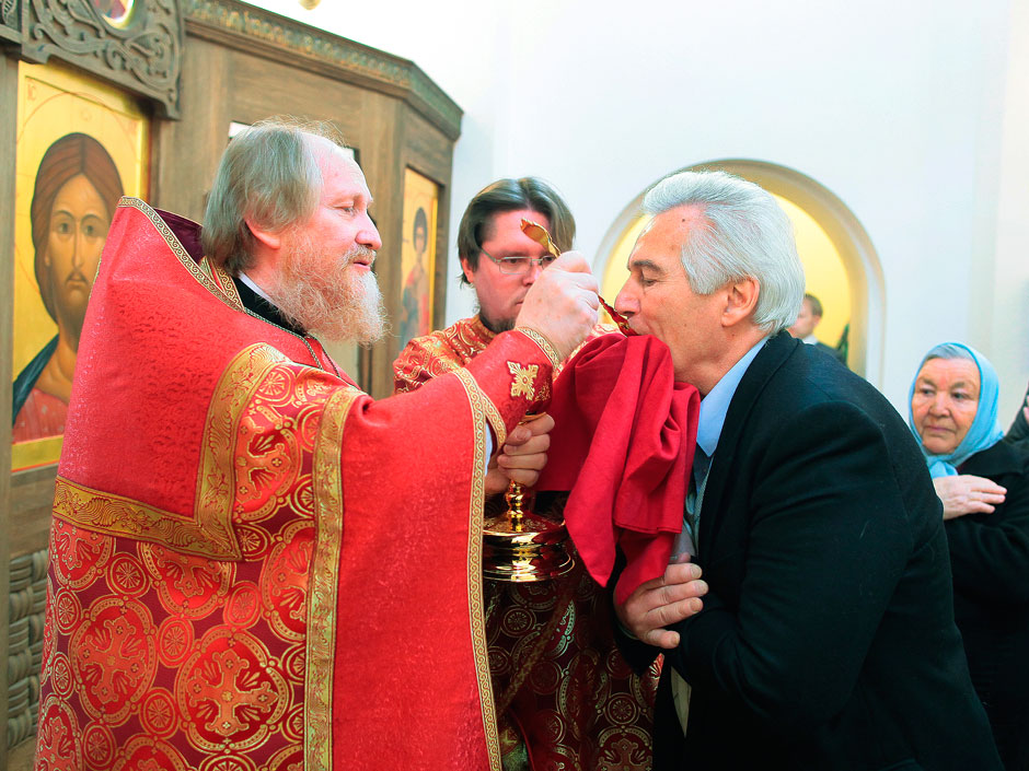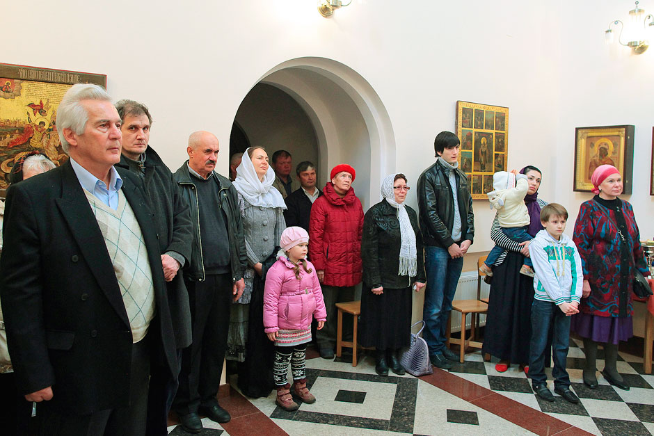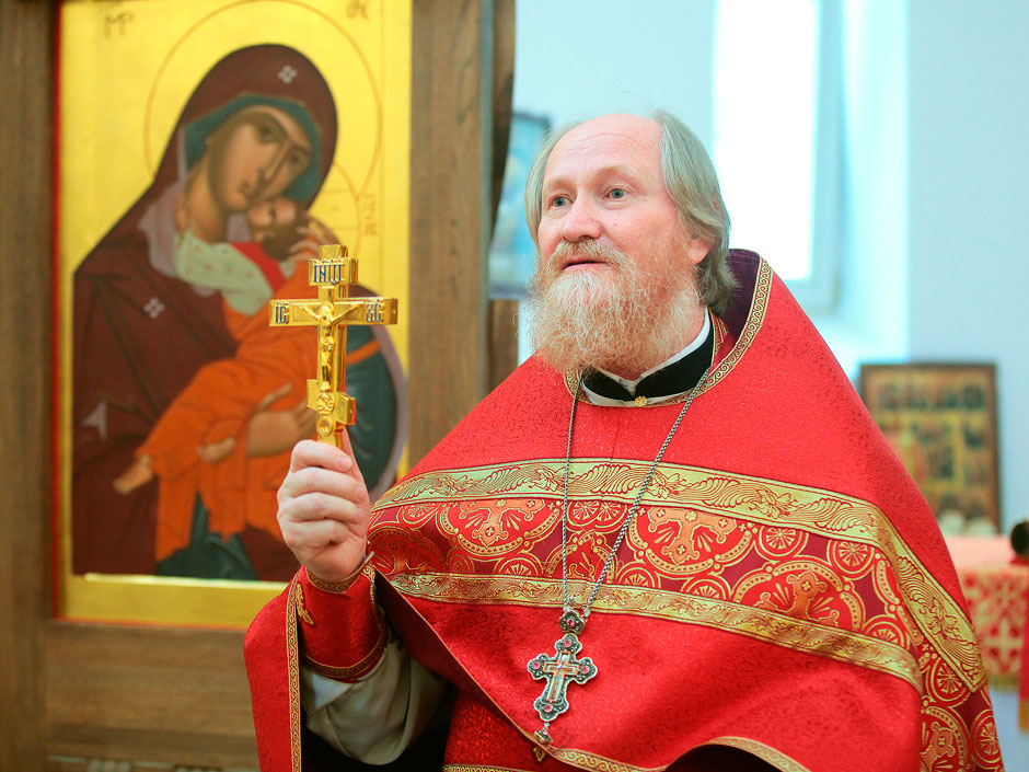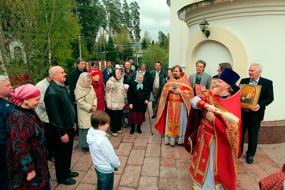 После крестного хода к священнослужителям и прихожанам обратился протоиерей Андрей Ковальчук, он поздравил приход с началом литургической жизни и дал напутствия настоятелю и прихожанам Георгиевского храма.