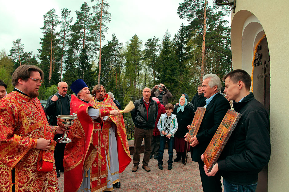 6 мая в новопостроенном храме в честь вмч. Георгия Победоносца дер. Аксиньино (на территории КИЗ «Слава») благочинным церквей Щелковского округа протоиереем Андреем Ковальчуком и настоятелем храма священником Игорем Логуновым была совершена Божественная литургия.