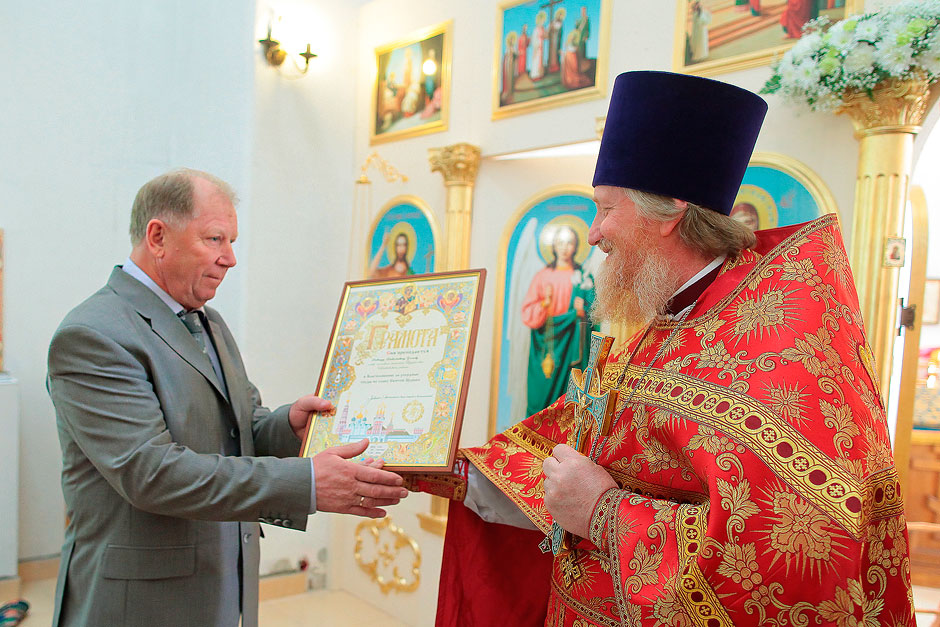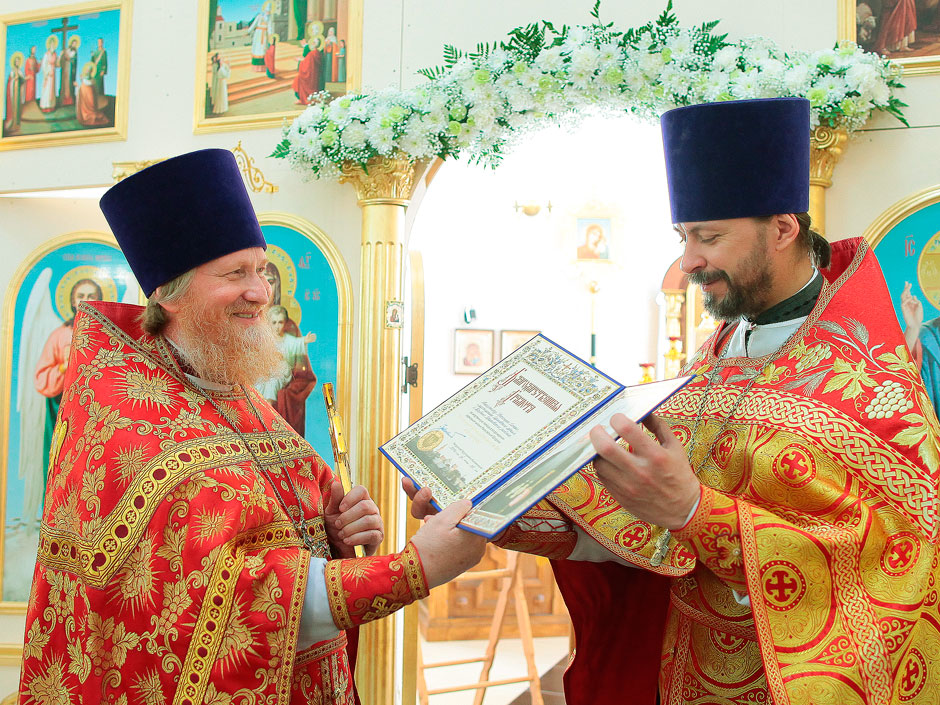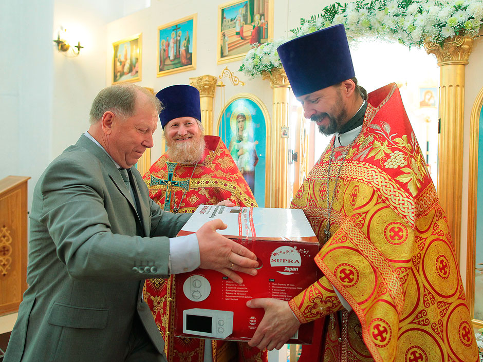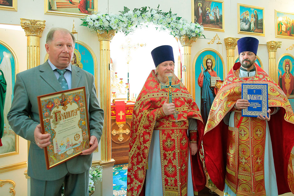 В конце праздничного богослужения протоиерей Андрей Ковальчук преподнес настоятелю храма священнику Антонию Сенько и Главе Трубинского сельского поселения Виктору Николаевичу Углову в честь юбилейного года 700-летия со дня рождения преп. Сергия Радонежского Благодарственную и Благословенную грамоты митрополита Крутицкого и Коломенского Ювеналия. В своем ответном слове глава поселения сказал о том, как важно, что поселок приобрел свой духовный центр: «Более 300 лет назад в нашей местности был храм, и вот теперь мы возвращаем утраченное». На улице у храма прихожан и жителей Литвиново ждало праздничное угощение.