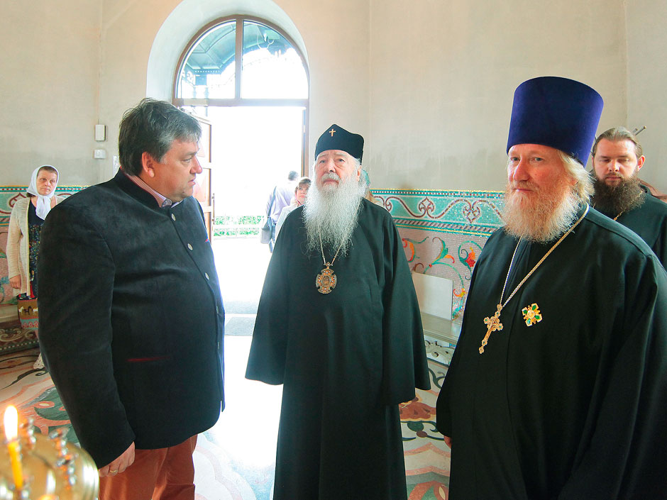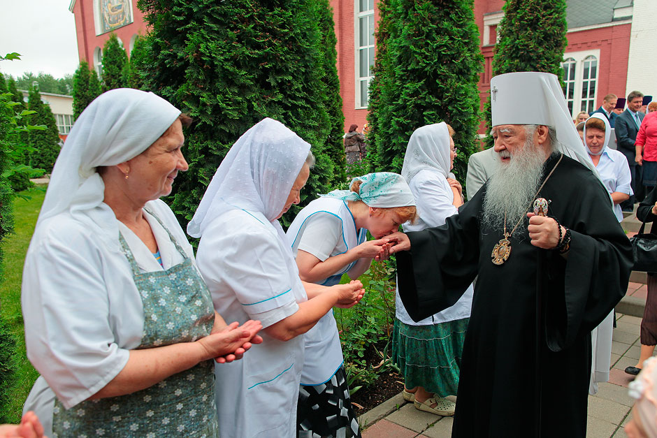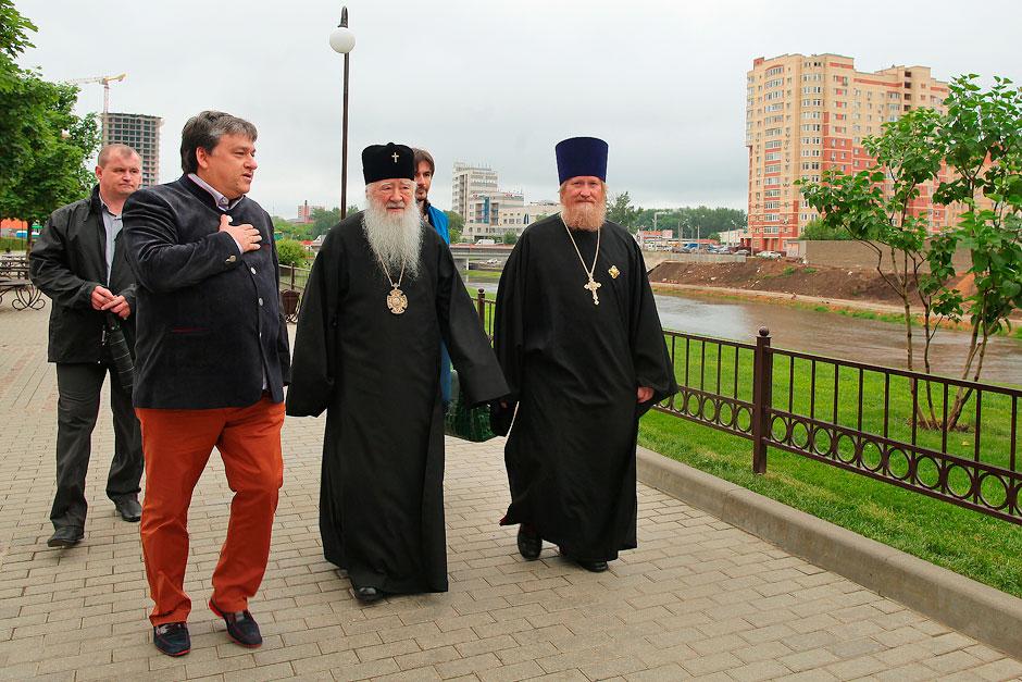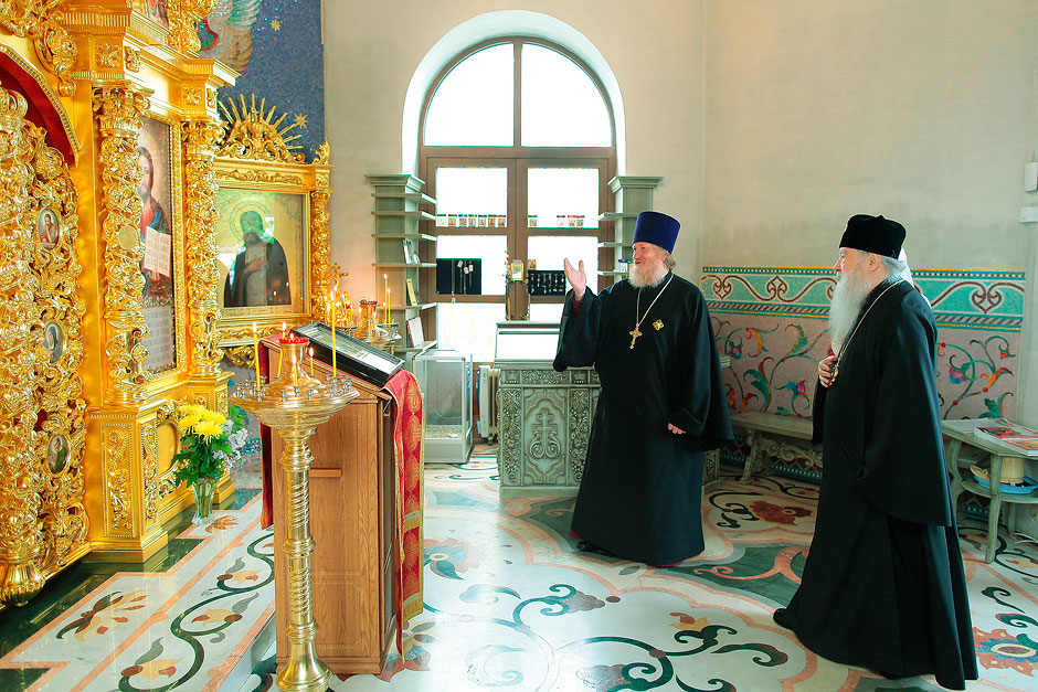 Перед началом литургии в г. Щелково владыка Ювеналий посетил Серафимо-Саровский храм и осмотрел его внутреннее убранство. О проводимых работах по подготовке к освящению владыке рассказали настоятель храма прот. Андрей Ковальчук и староста храма Дмитрий Алексеевич Барченков. Серафимо-Саровскую набережную и храм в 2011 году посетил Святейший Патриарх Московский и всея Руси Кирилл во время своего визита в г. Щелково.
