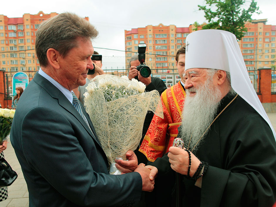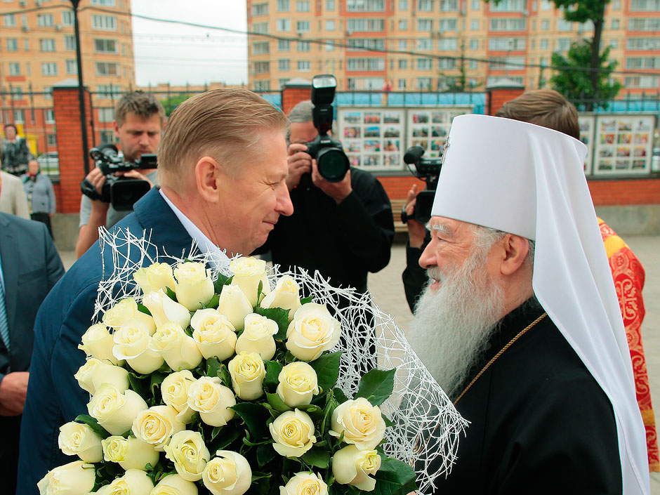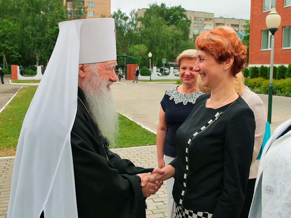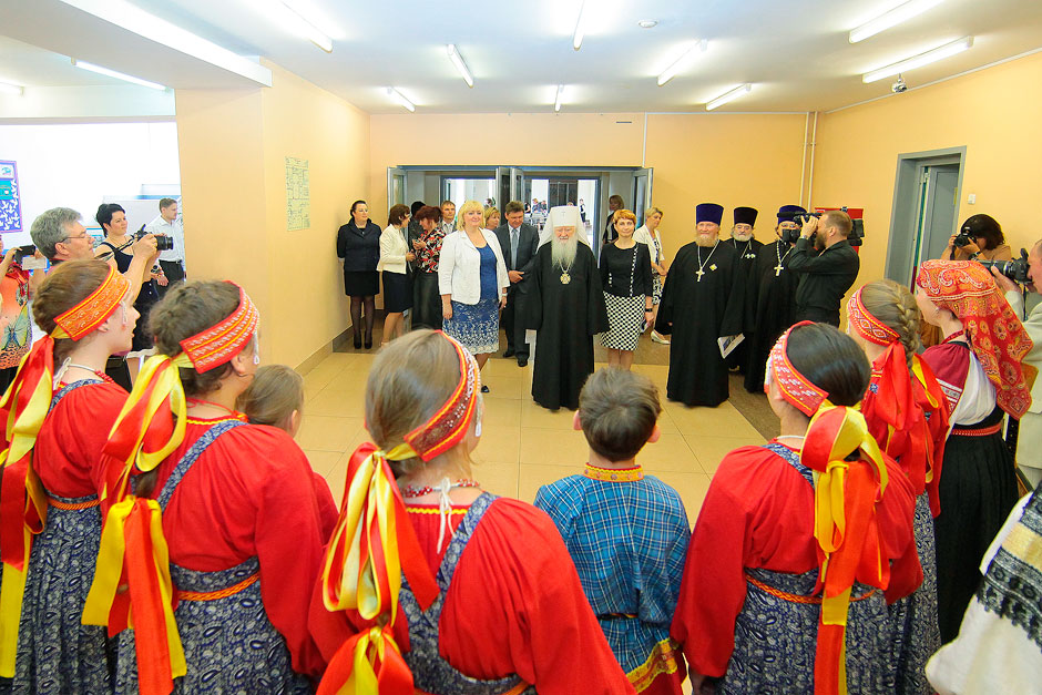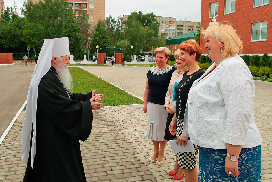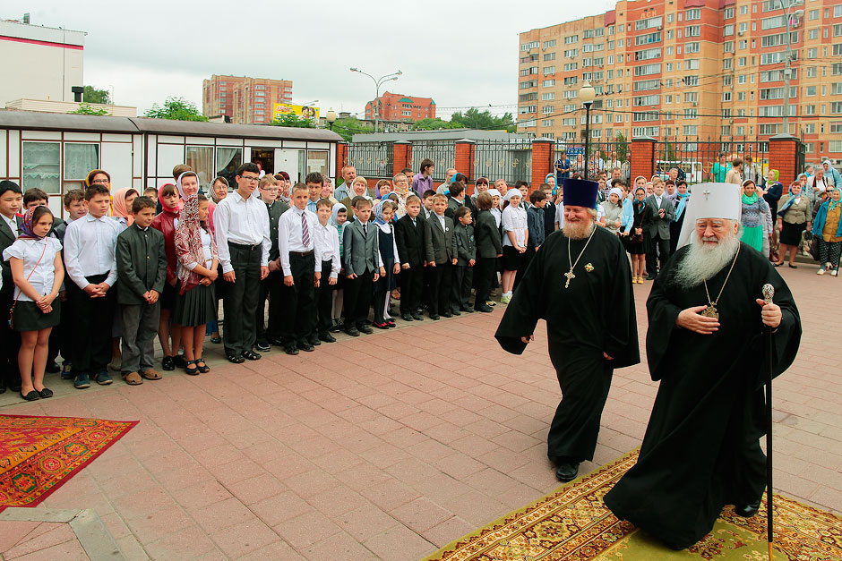 По прибытии управляющего Московской епархией Русской Православной Церкви митрополита Крутицкого и Коломенского Ювеналия, министра образования Московской области Марины Борисовны Захаровой в школьном актовом зале началось торжественное мероприятие. С музыкально-литературной композицией «Сергий Радонежский» выступил творческий коллектив Щелковского лицея № 14 (руководитель Валентина Ивановна Ефименко).