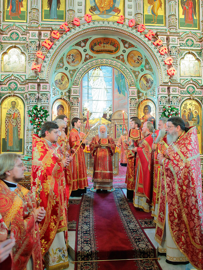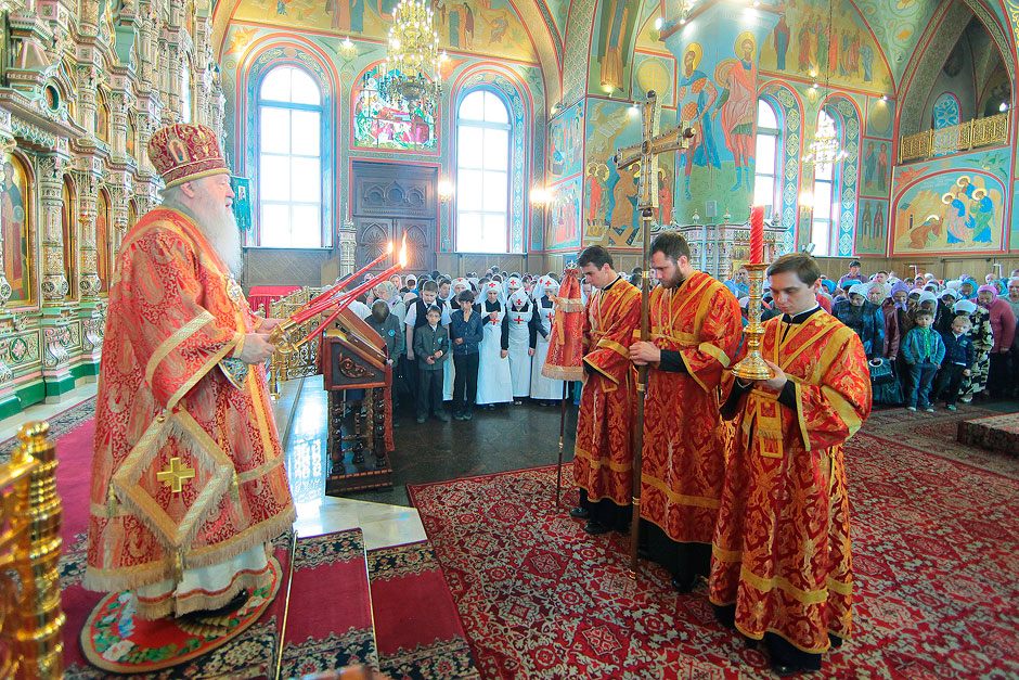 В Троицком соборе г. Щелково управляющий Московской епархией Русской Православной Церкви митрополит Крутицкий и Коломенский Ювеналий возглавил Божественную литургию, ему сослужили благочинный Ивантеевского церковного округа протоиереей Иоанн Монаршек, благочинный Щелковского округа протоиерей Андрей Ковальчук, благочинный Пушкинского округа протоиерей Иоанн Монаршек, благочинный Лосино-Петровского округа священник Павел Галушко и сонм духовенства. За литургией молились Глава Щелковского муниципального района Александр Матвеевич Ганяев, глава городского поселения Щелково Татьяна Борисовна Ершова, министр образования Московской области Марина Борисовна Захарова, заместитель главы Щелковского района, председатель Комитета по вопросам образования Щелковского района Надежда Владимировна Суровцева, генеральный директор ЗАО «Щелковохлеб» Игорь Викторович Ларин, прихожане щелковских храмов, представители педагогической общественности и участники областного родительского собрания. После богослужения в день Отдания праздника Пасхи Владыка Ювеналий обратился к верующим с возгласом «Христос воскресе!», отметив, что сегодня завершаются пасхальные дни, но радость Воскресения Господня всегда пребывает с верующими. На праздничной трапезе благочинный церквей Щелковского округа протоиерей Андрей Ковальчук поблагодарил Владыку за совместную молитву в этот день и преподнес ему Пасхальный подарок.