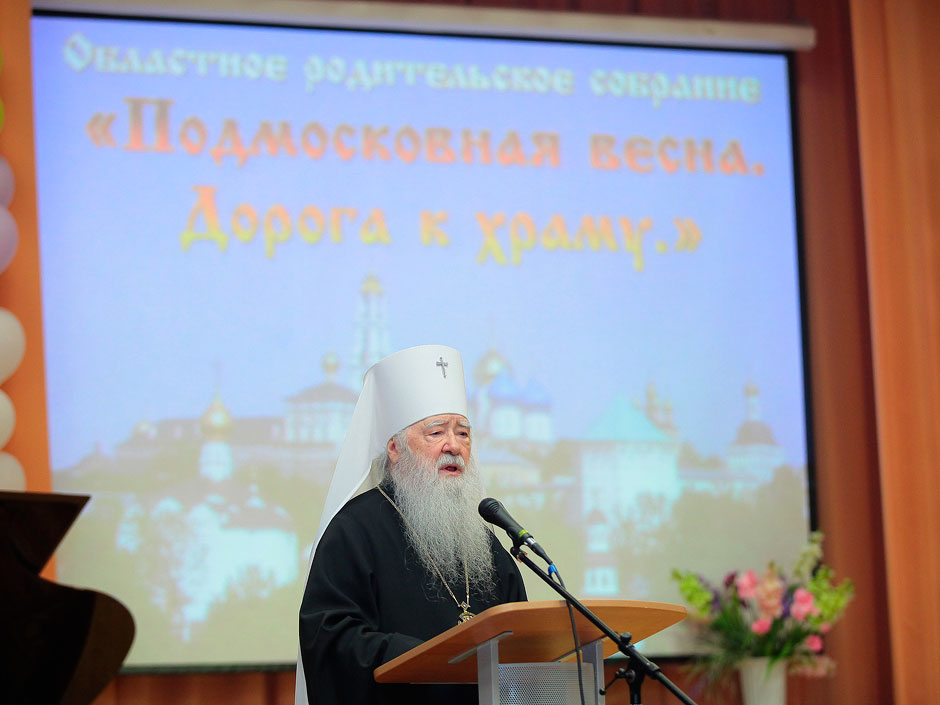 «Сегодня в Московской области проходит очень важное мероприятие – областное родительское собрание. Кем бы вы в жизни ни были, какие бы посты и должности мы ни занимали, прежде всего, мы с вами являемся родителями, а все остальное – потом. Именно от нас с вами зависит, что будет с нашими детьми в будущем, какими они вырастут, что возьмут от наших предков. Может ли один родитель или учитель справиться с задачей воспитания? Нет, не может. Но у нас с вами есть опора и поддержка – Церковь. Как важно между благочиниями и органами управления образованием, между приходами и образовательными учреждениями, между священниками и учителями иметь отношения конструктивного сотрудничества. В Московской области такие отношения уже существуют и, самое важное, что это конструктивное сотрудничество означает, что и учитель, и священник работают воедино, они понимают, к какой цели должны двигаться. Духовно-нравственное воспитание является ключевым элементом всей образовательной системы области».