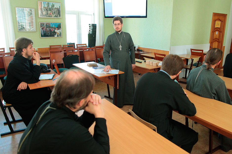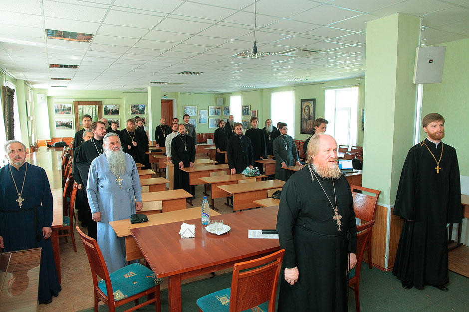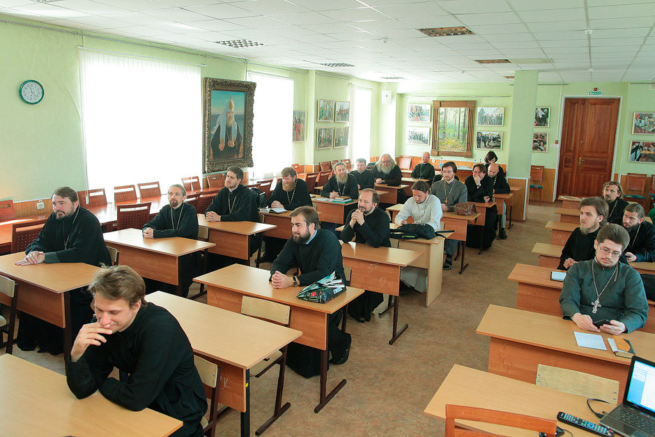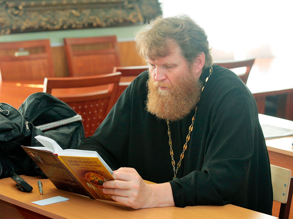 Собрание священнослужителей было продолжено пастырским семинаром. С докладом «Православное учение о Сотворении и теория эволюции» перед собравшимися выступил настоятель храма Успения Пресвятой Богородицы в Архангельском-Тюрикове, кандидат геолого-минералогических наук и руководитель Миссионерско-просветительского центра «Шестоднев» протоиерей Константин Буфеев.