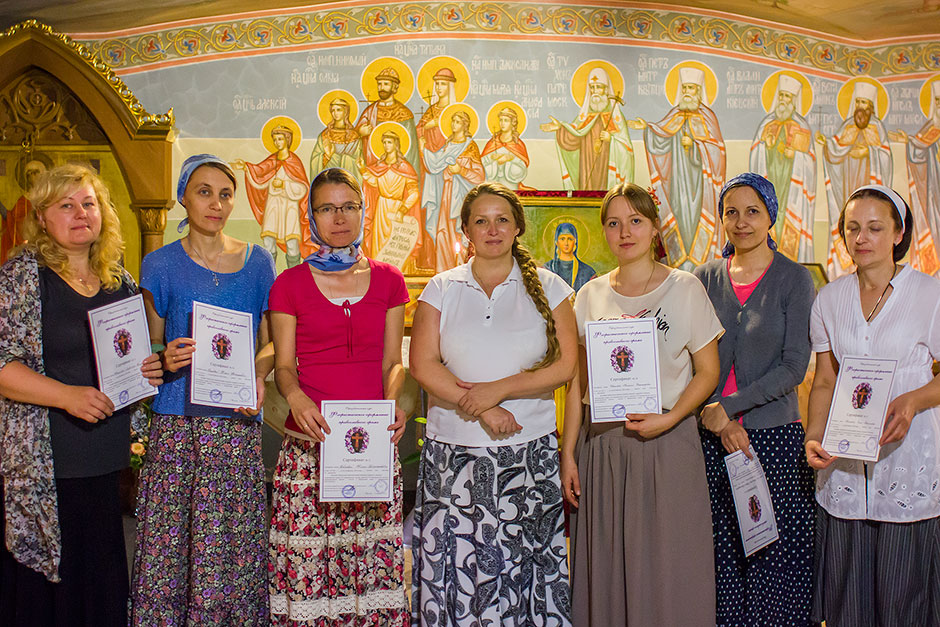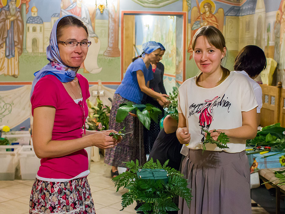 Занятия будущих флористов проходили в нижнем храме Троицкого собора, освященного в честь св. мучениц Веры, Надежды, Любови и матери их Софии, что дало возможность слушателям освоить программу в реальном интерьере храма. Экзаменационным заданием стало участие в оформлении Троицкого собора к празднику Преображения Господня. На курсах учились флористы из разных городов Подмосковья.