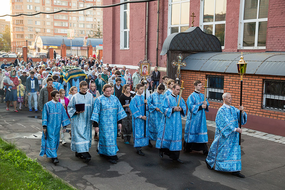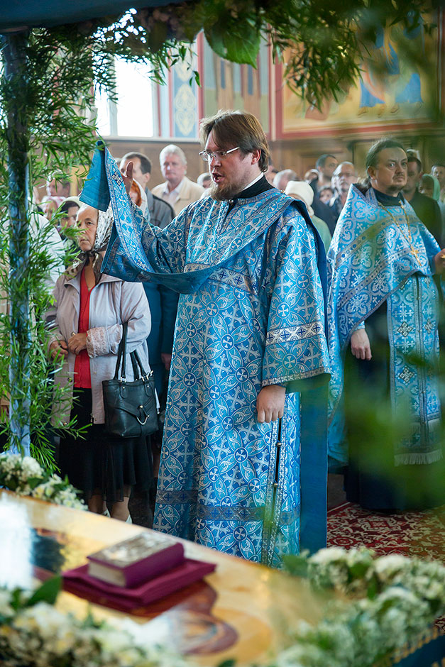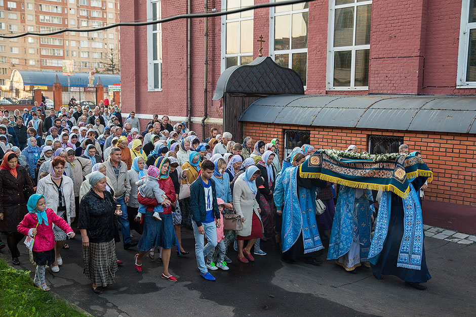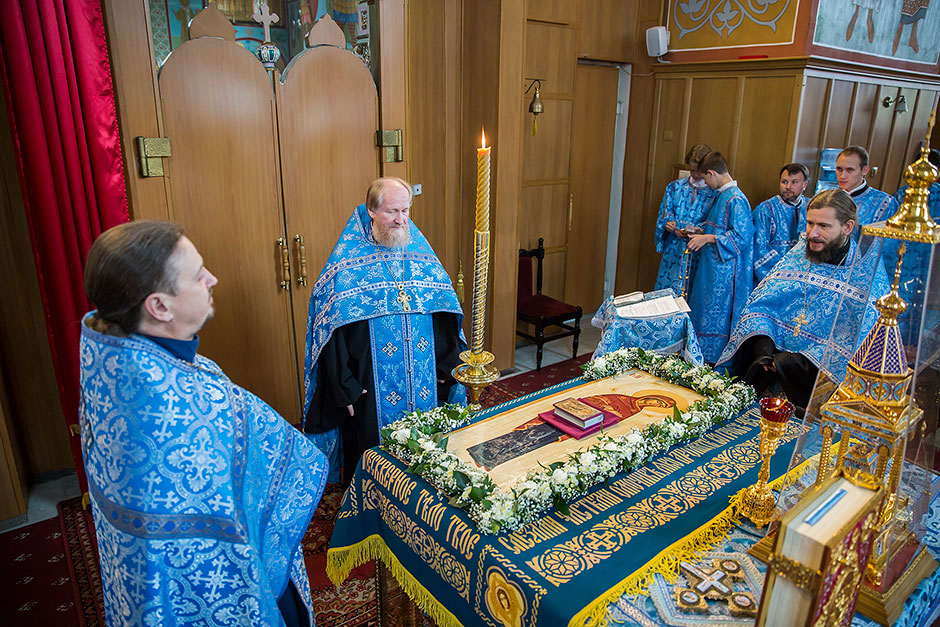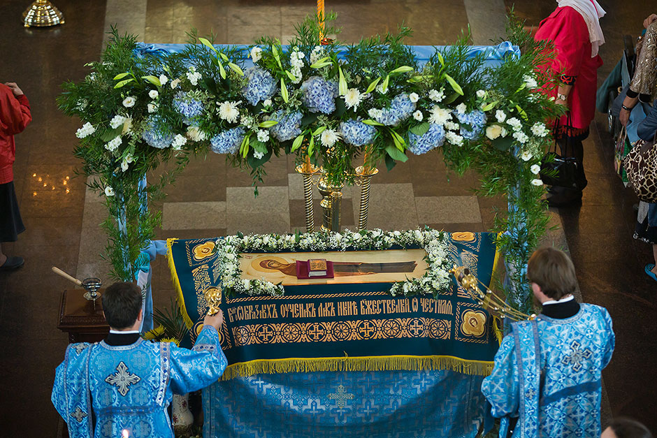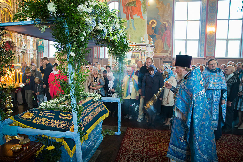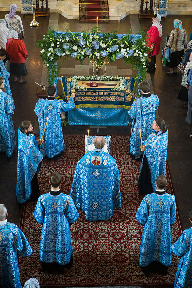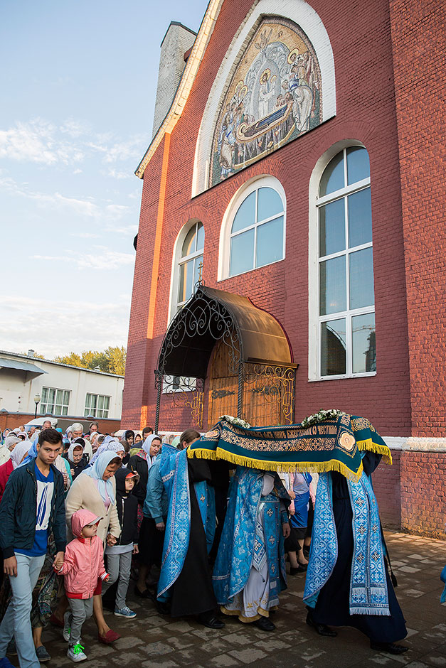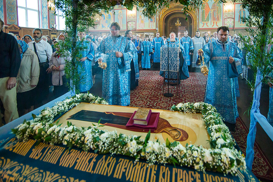 Для Троицкого собора г. Щелкова это престольный праздник, так как правый предел этого храма посвящен этому событию. Накануне, 27 августа, было совершено торжественное Всенощное бдение с чином Погребения Божией Матери.