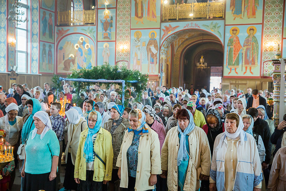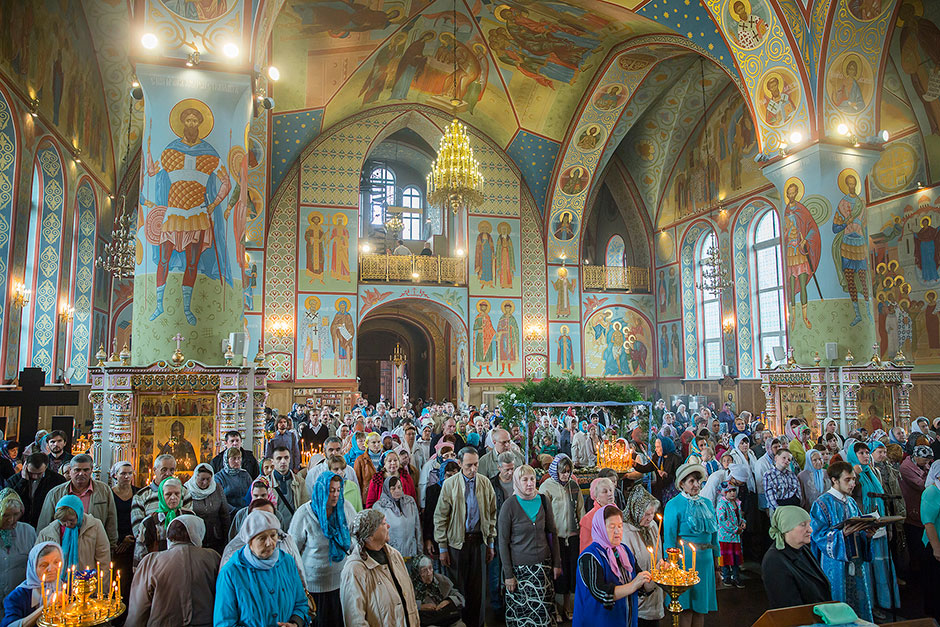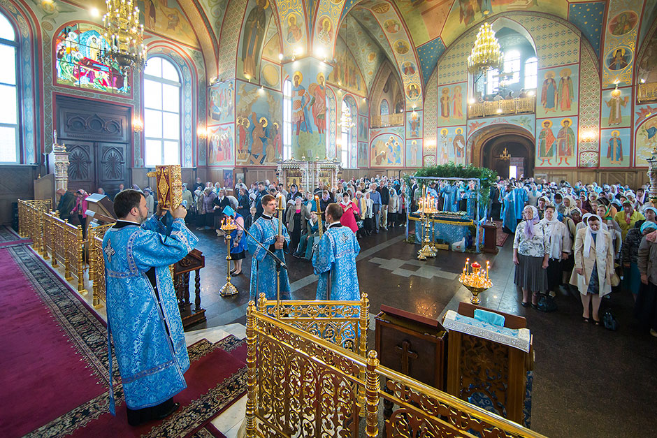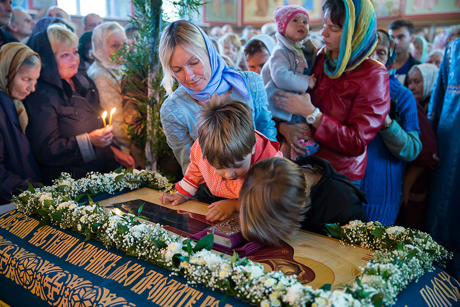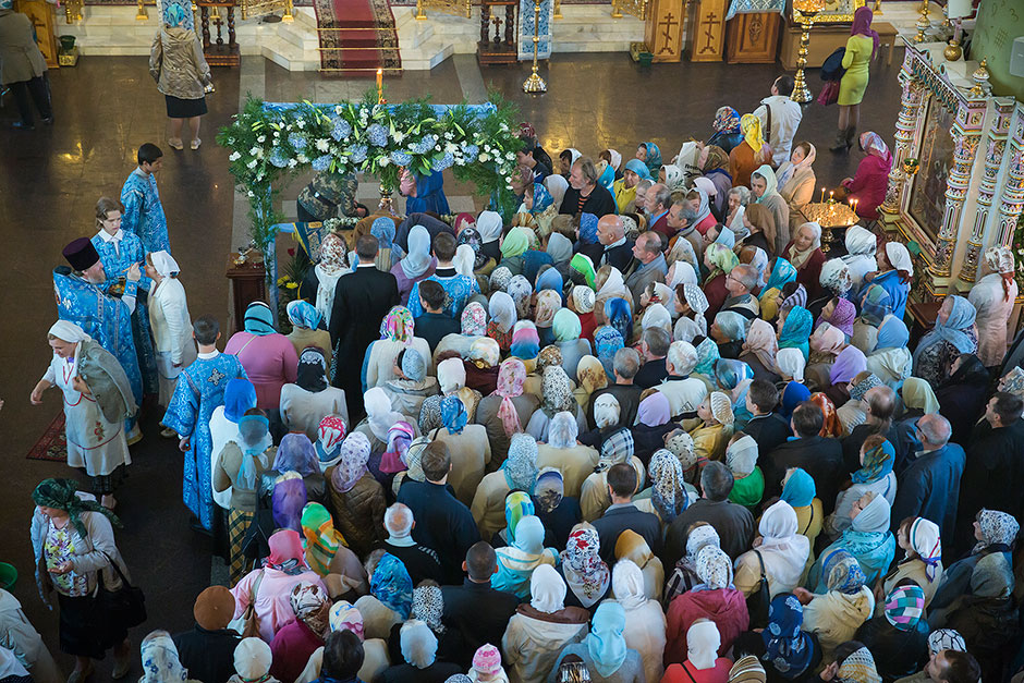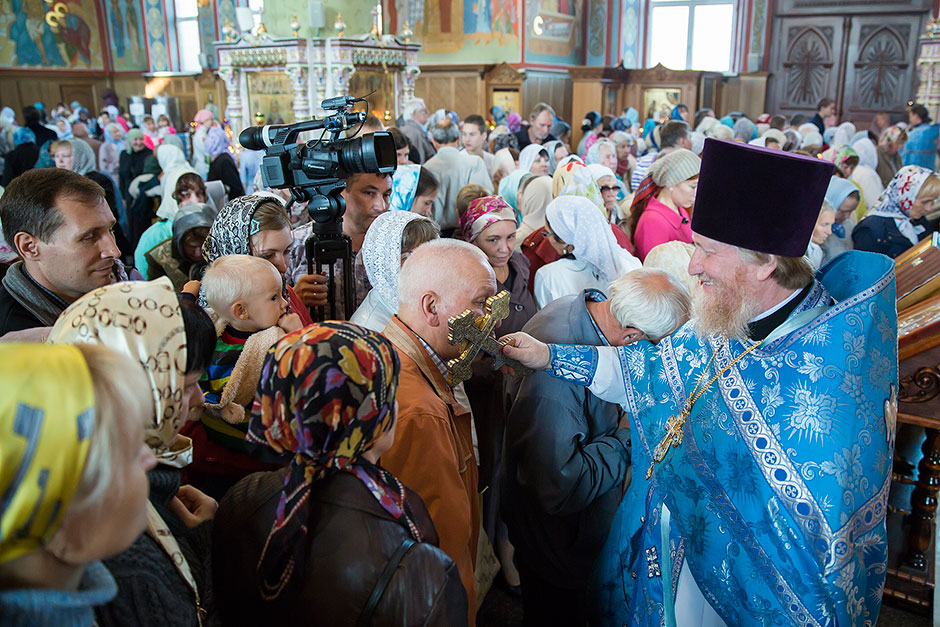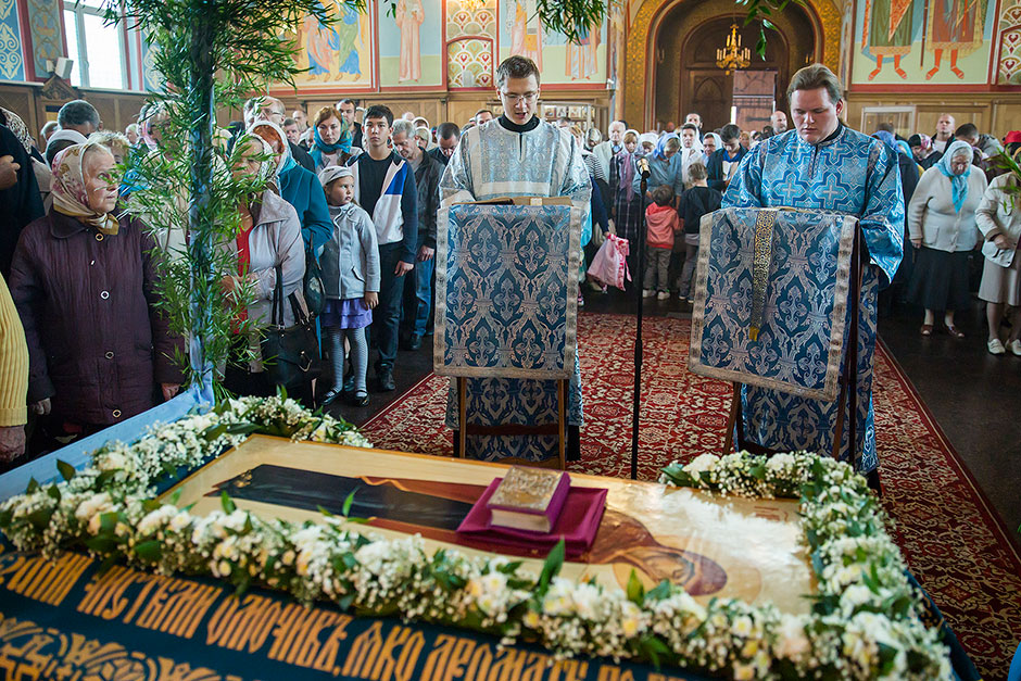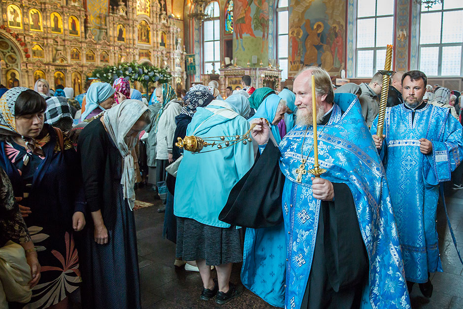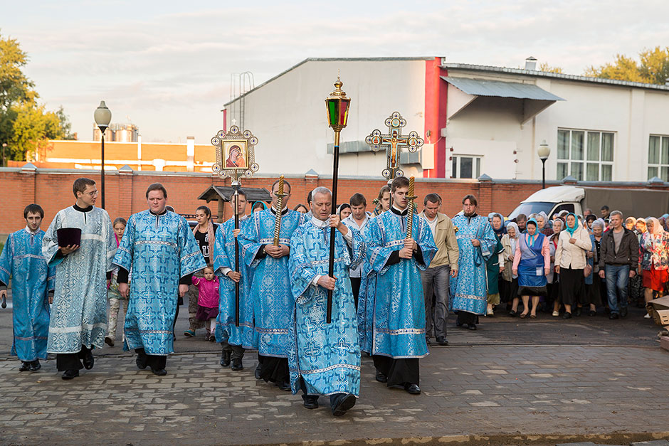 Для Троицкого собора г. Щелкова это престольный праздник, так как правый предел этого храма посвящен этому событию. Накануне, 27 августа, было совершено торжественное Всенощное бдение с чином Погребения Божией Матери.