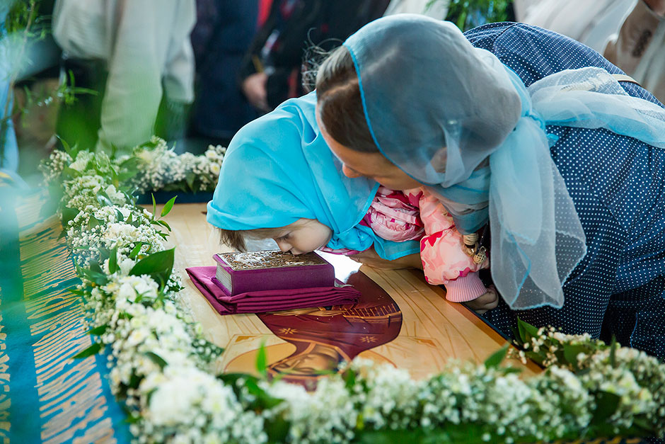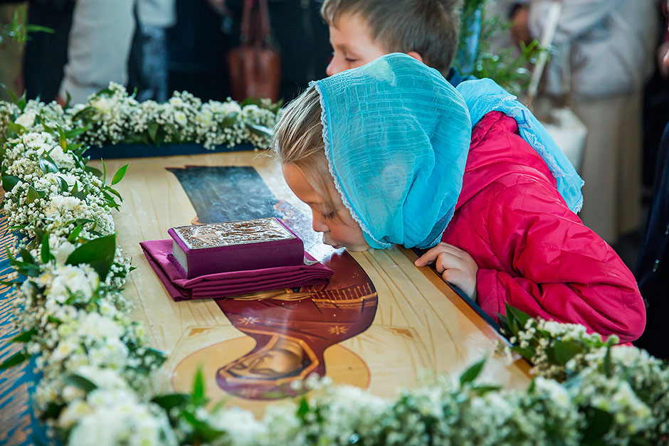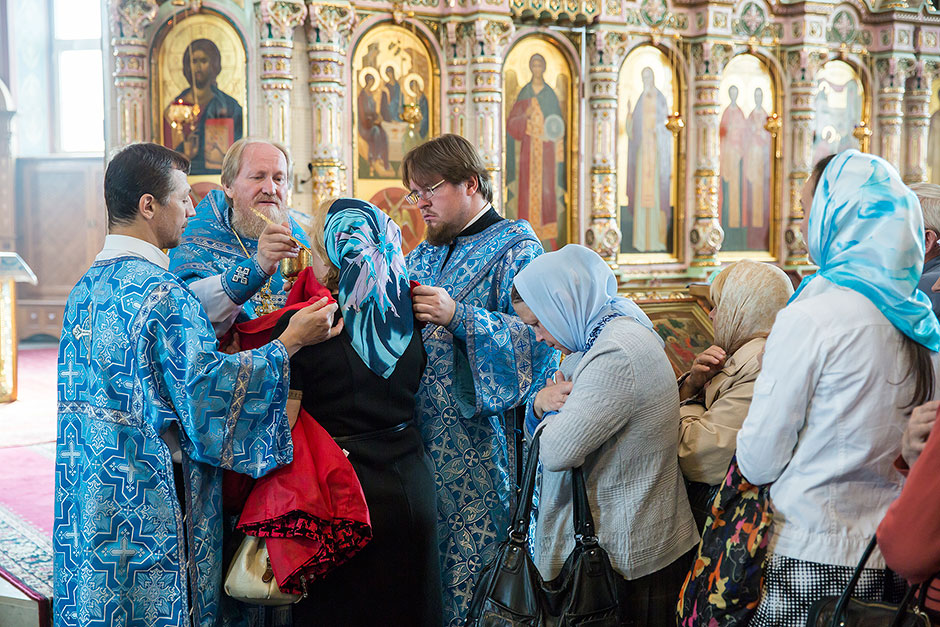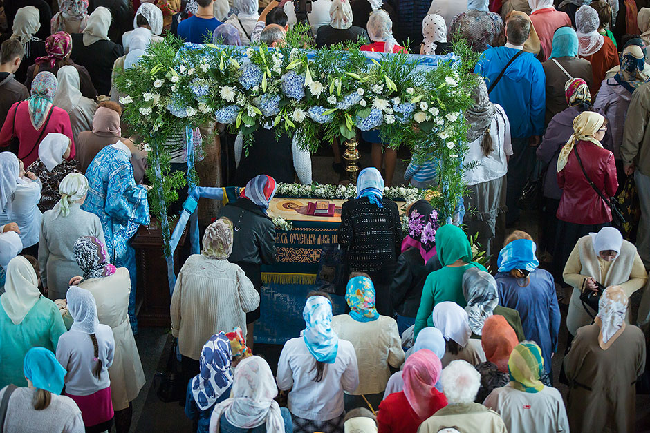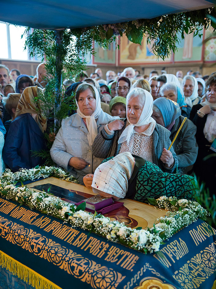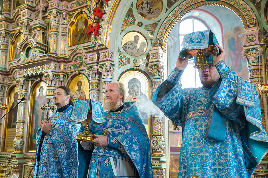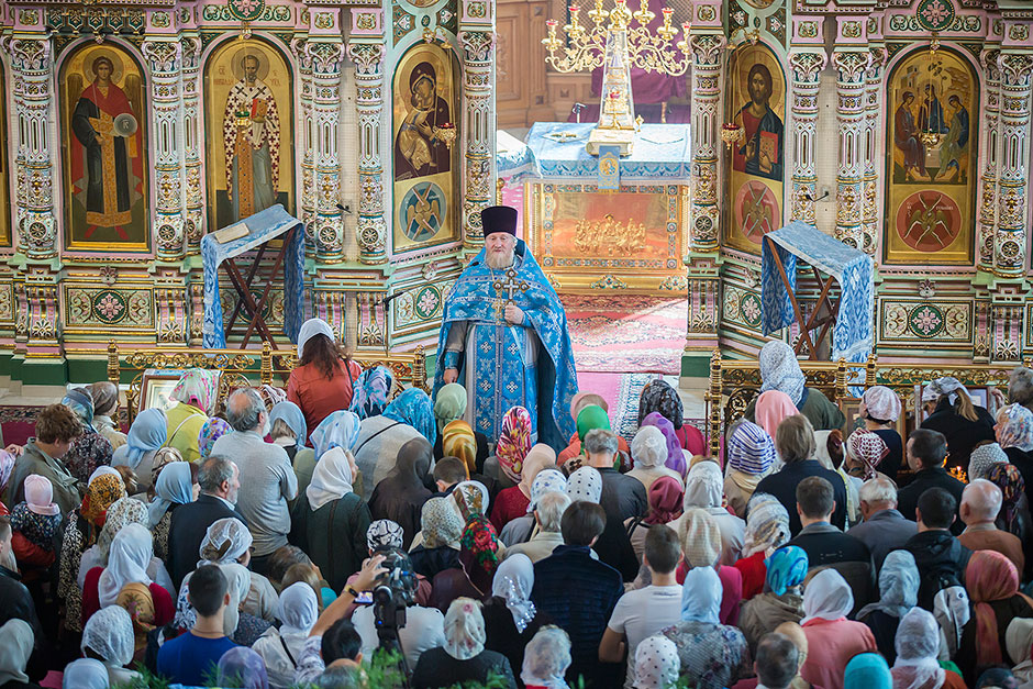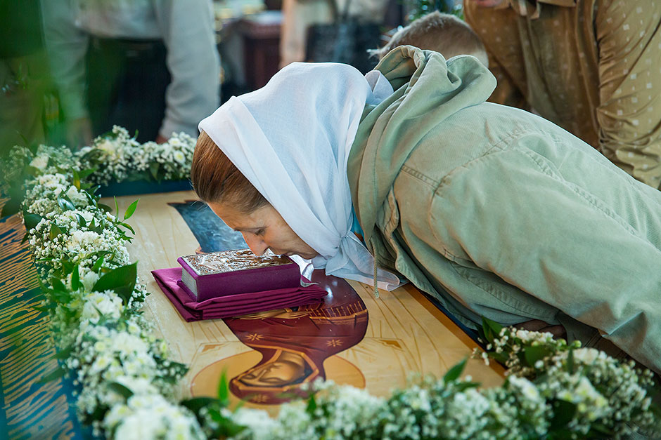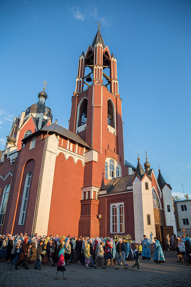 Для Троицкого собора г. Щелкова это престольный праздник, так как правый предел этого храма посвящен этому событию. Накануне, 27 августа, было совершено торжественное Всенощное бдение с чином Погребения Божией Матери.