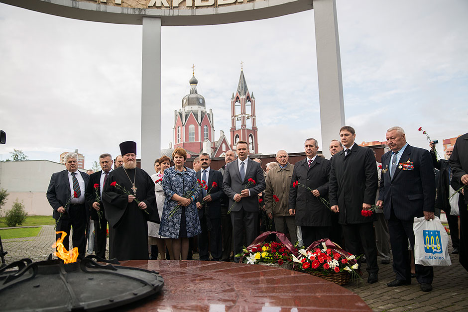 Праздничный день 30 августа начался с посещения Делегацией иностранных гостей из городов-побратимов Троицкого собора г. Щелково. Экскурсию провел настоятель Троицкого собора, протоиерей Андрей Ковальчук. Затем на Аллее Памяти прошло торжественное возложение цветов к Вечному огню, щелковчане почтили память горожан, павших в годы Великой Отечественной войны.