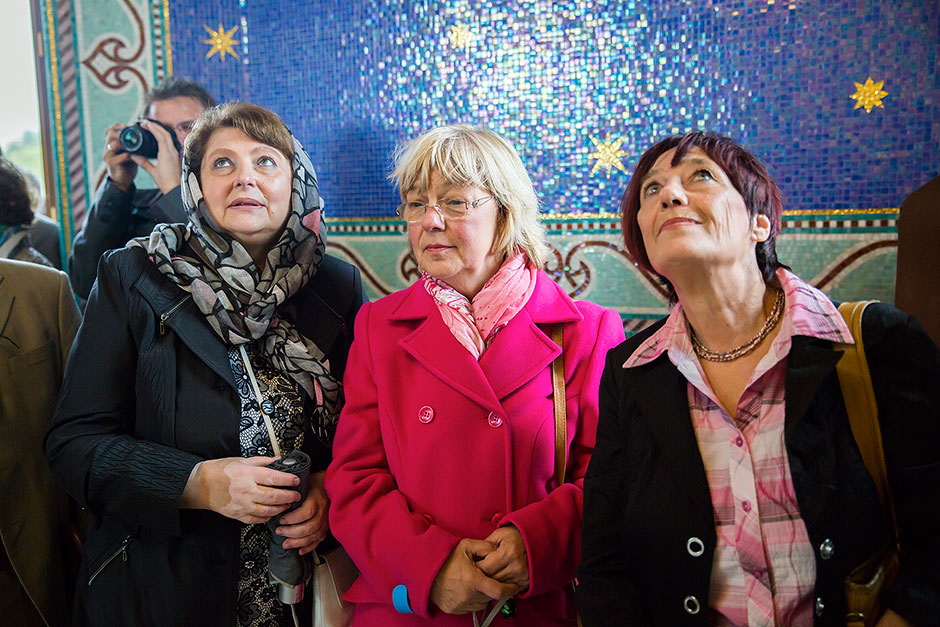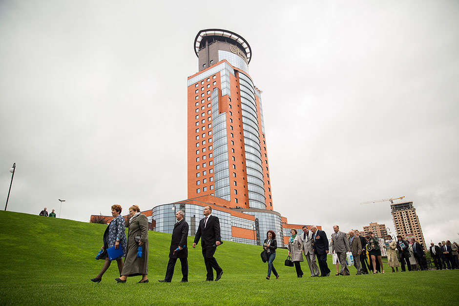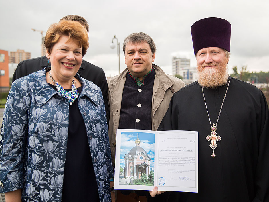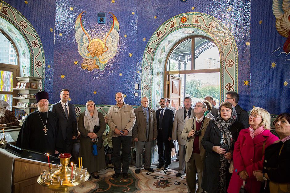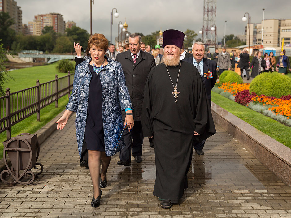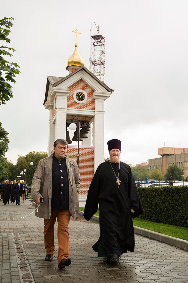 Следующей точкой пребывания гостей стало посещение набережной Серафима Саровского. Экскурсионную программу по набережной с Парком Солнечных часов и Серафимо-Саровским храмом со звонницей провел ктитор храма, председатель холдинга «Щелковский» Дмитрий Алексеевич Барченков.