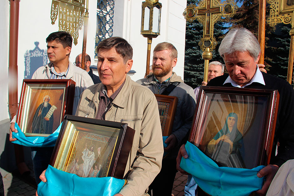 После Божественной литургии был совершен праздничный молебен с крестным ходом вокруг храма.